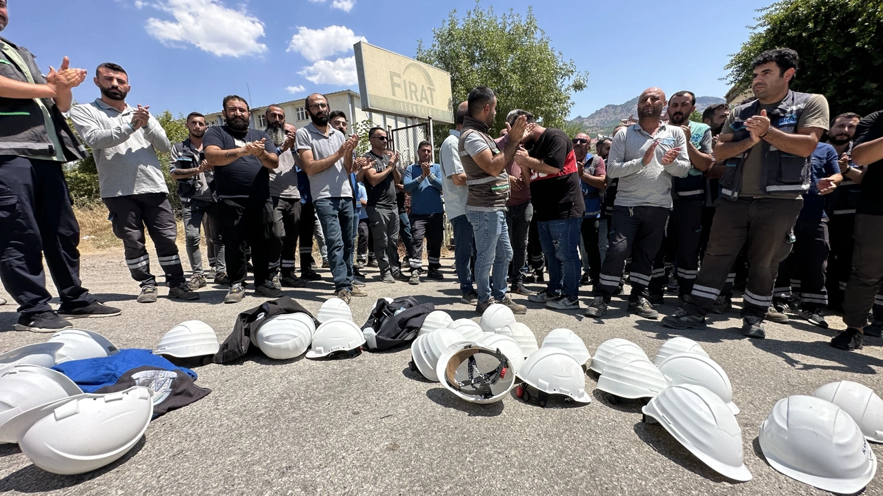 Açıklamanın sona ermesiyle baretlerini yere bırakan işçiler, düşük zammı kabul etmeyeceklerini bir kez daha ifade etti.
