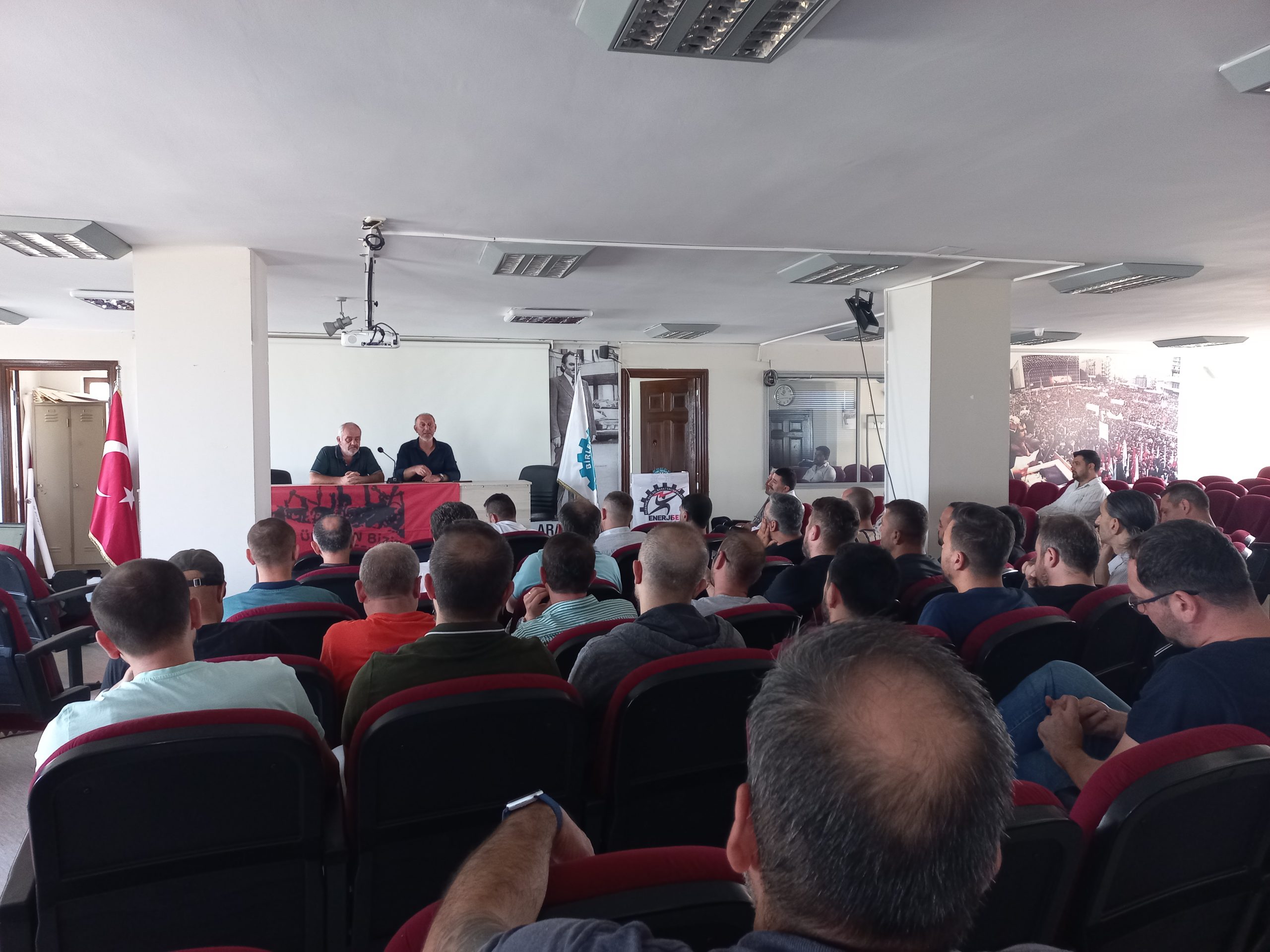 Söz alan işçiler, DİSK/Enerji-Sen’e üye yapmaya çalıştıkları arkadaşlarında karşılaştıkları en yaygın direncin Sabancı’nın DİSK’e bağlı bir sendikayla masaya oturmayacağına dair bir algı olduğunu ifade etti. Keskin, DİSK’e bağlı Lastik-İş’in hali hazırda Sabancı’ya bağlı şirketlerde toplu sözleşme yaptığını hatırlatırken bu algının sarı sendikalar tarafından yayıgınlaştırılmaya çalışıldığını belirtti. Keskin yürütülen toplu sözleşme süreçlerinin yanı sıra Sabancı’ya bağlı Başkent Elektrik’te işten atılan işçiler için yürüttükleri ve kazanımla sonuçlanan direnişi de hatırlattı.