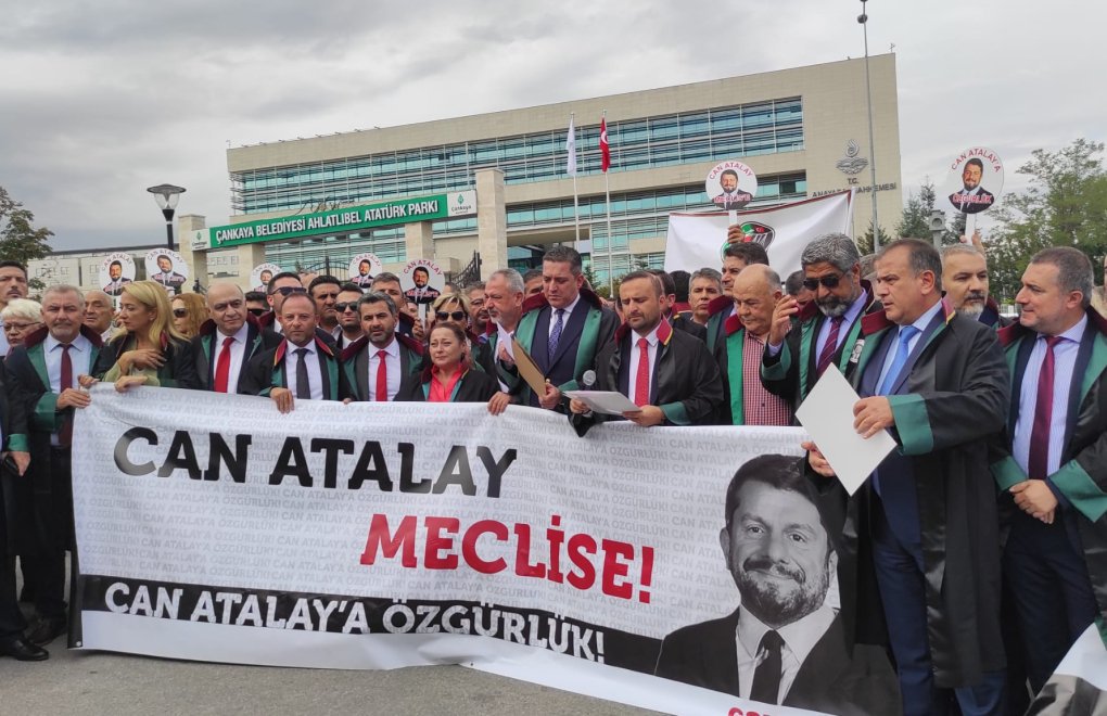 Türkiye Barolar Birliği (TBB) ve 55 barodan avukatlar, hakkındaki Gezi davasında verilen hapis cezası onanmamasına rağmen serbest bırakılmayan Türkiye İşçi Partisi milletvekili Can Atalay’ın serbest bırakılması talebiyle Anayasa Mahkemesi önündeydi.