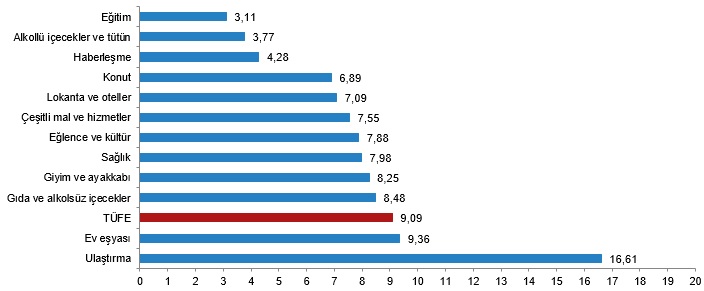 Enflasyonu etkileyen alt kalemlere bakıldığında yıllık bazda lokanta ve otel fiyatlarındaki artış yüzde 89,31 ile başı çekerken sağlık harcamalarındaki artış yüzde 77,55 oldu. Gıda harcamalarındaki artış ise yüzde 72,86 olarak kaydedildi.