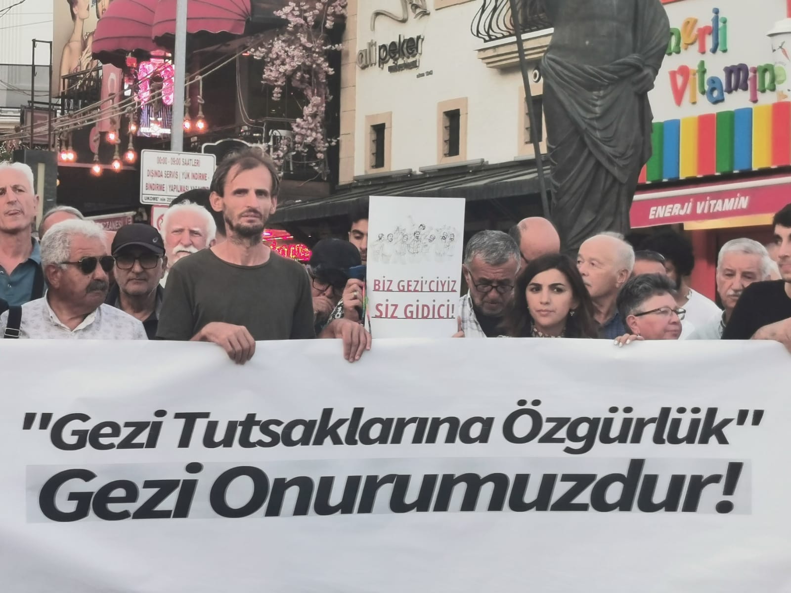 Gezi davasında mahkûm etmeye çalıştıkları milyonların eşitlik, özgürlük, adalet kavgasıdır. Gezi halktır, yargılanamaz. Meydanları aynı ruhla dolduran emekçilerin ve tüm ezilen halkların en meşru isyanıdır Gezi. Bizler biliyoruz ki; asıl yargılanması gerekenler Abdullah’ı, Ethem’i, Ali İsmail’i, Ahmet’i, Berkin’i, Mehmet’i, Hasan Ferit’i katledenlerdir. Gezi’ye ve gezi ruhuna sahip çıkıyoruz. Birlikteyiz, milyonlarız verilen bu hukuksuz karar gerçeği değiştirmeyecek. Gezi Onurumuzdur demekten bir adım geri atmayacağız. Arkadaşlarımızı alacağız elbet! Eşit, özgür, insanca yaşayacağımız bu ülkeyi, omuz omuza inşa etme mücadelemizden de asla vazgeçmeyeceğiz.