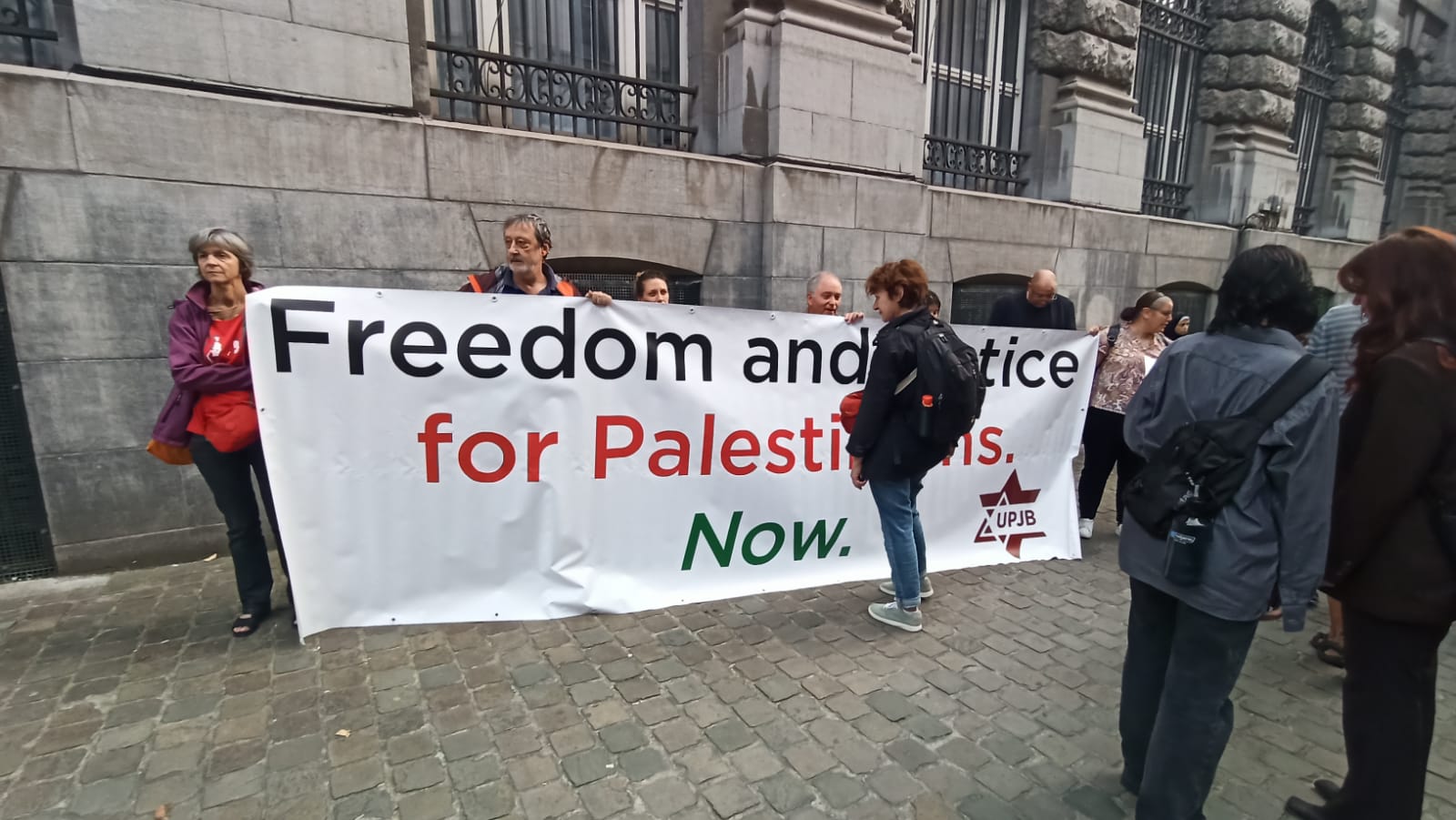 Eylemde 1939 yılında Belçika’daki antifaşist Yahudiler tarafından kurulan Belçika İlerici Yahudiler Birliği (UPJB) de yer alarak Filistinliler için adalet istedi.