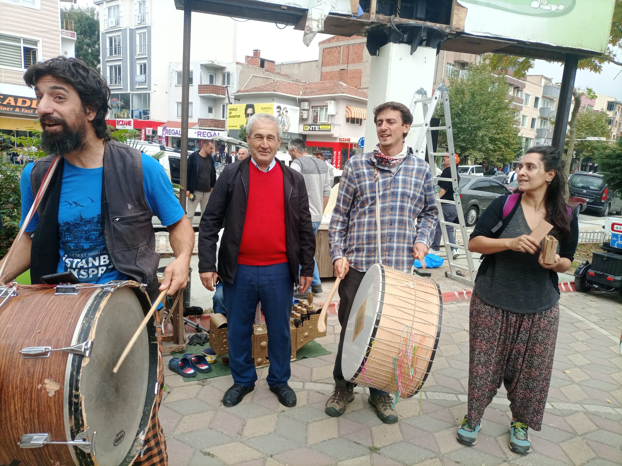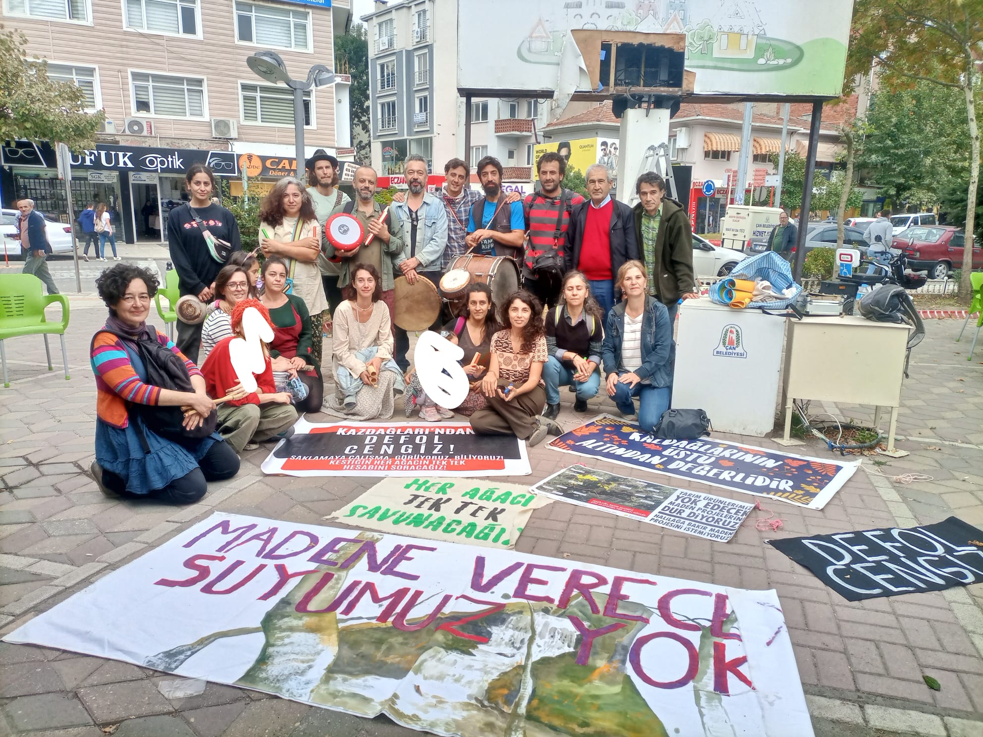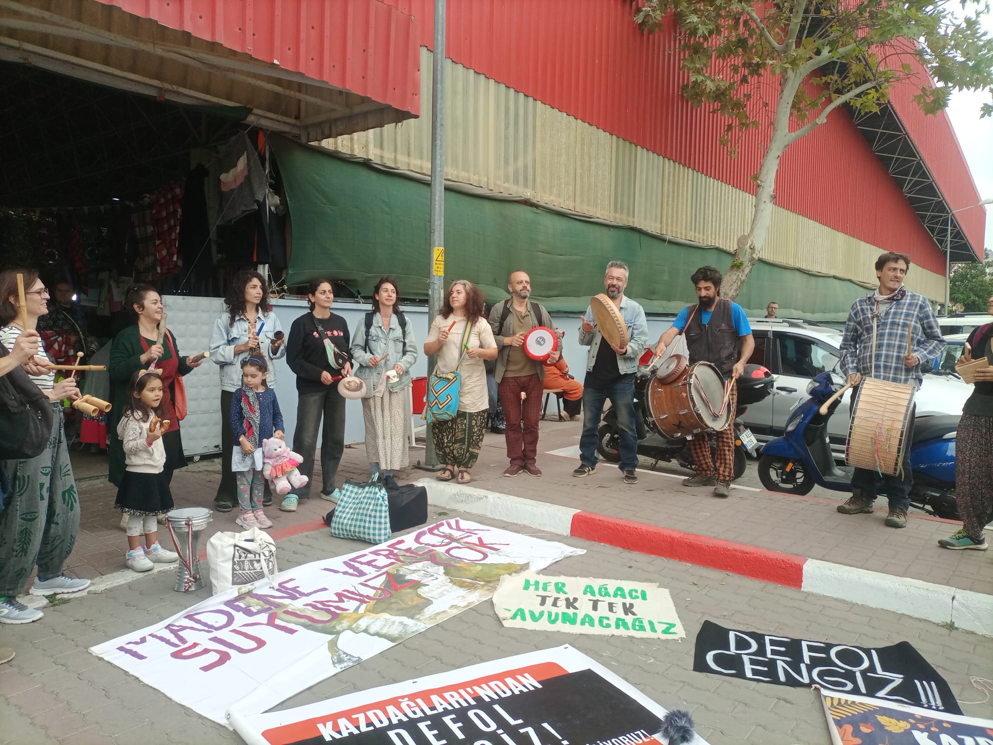 Yaşam savunucuları ellerindeki davul, zurna ve çalgı aletleriyle çevre türkülerini Cengiz Holding’e karşı seslendirirken pankartlar da açtılar.
