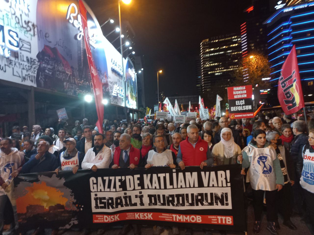 DİSK, KESK, TMMOB ve TTB’nin çağrısıyla yüzlerce kişi İstanbul’da İsrail Konsolosluğu’na yürüdü