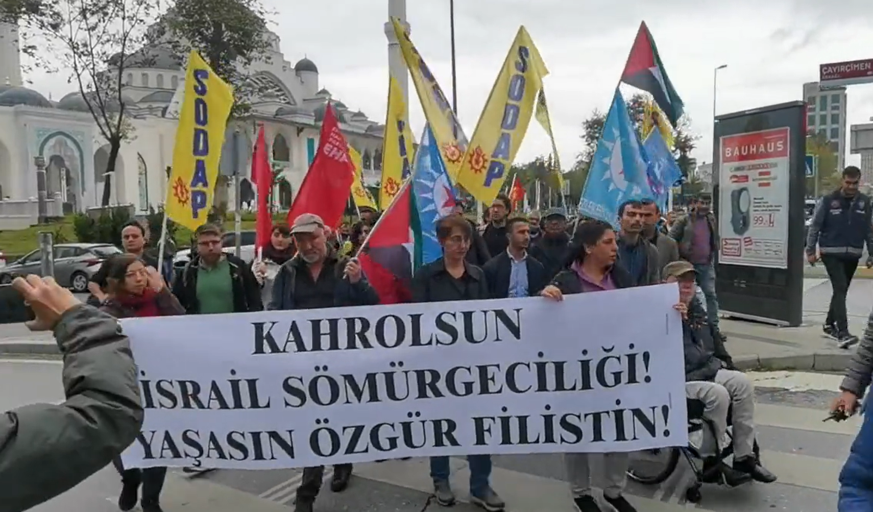 HDK bileşenleri ve çok sayıda kişi Konsolosluk önüne, “Filistin halkı yalnız değildir” sloganıyla yürüdü. pic.twitter.com/FrTaGLsi2k