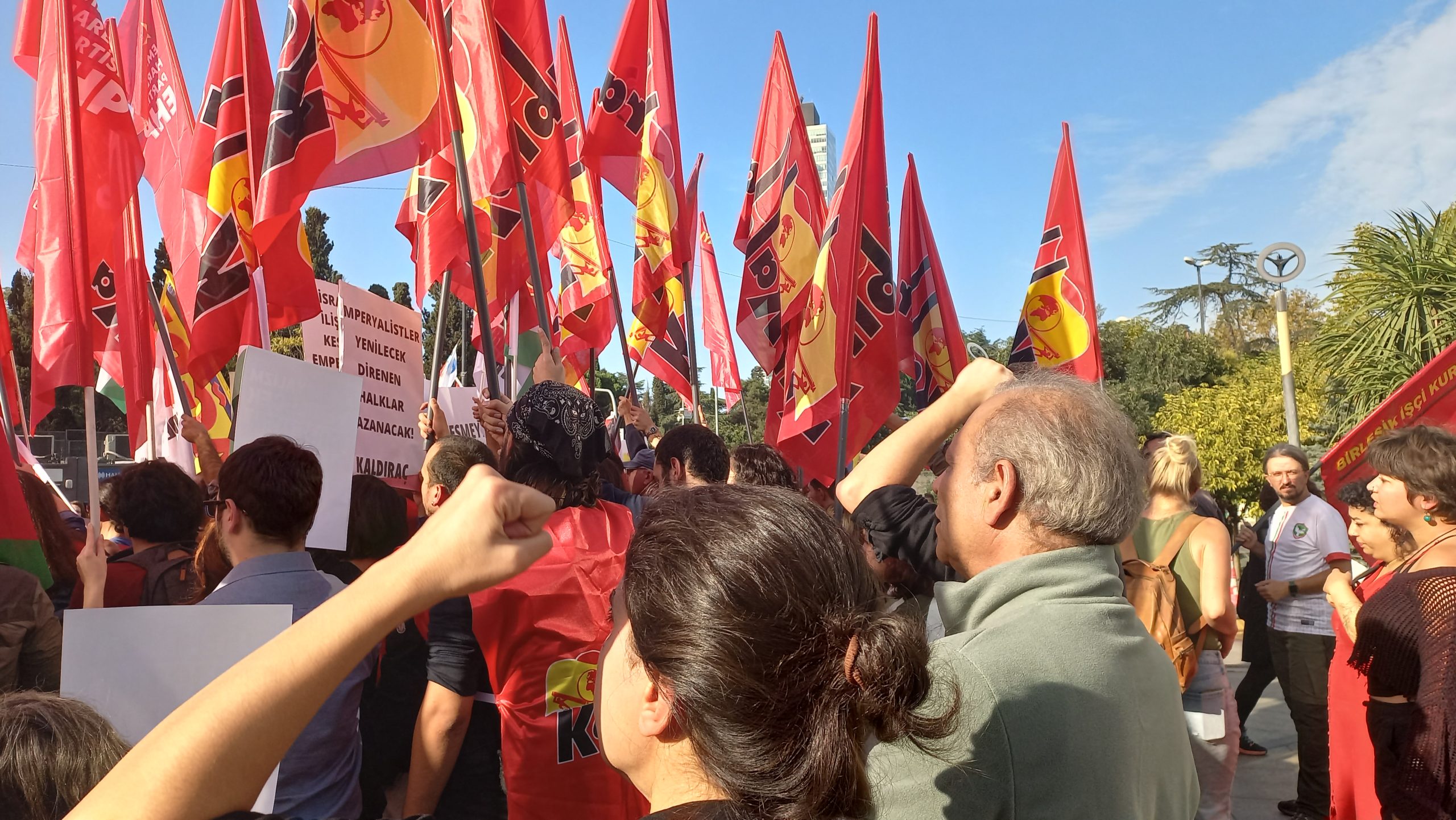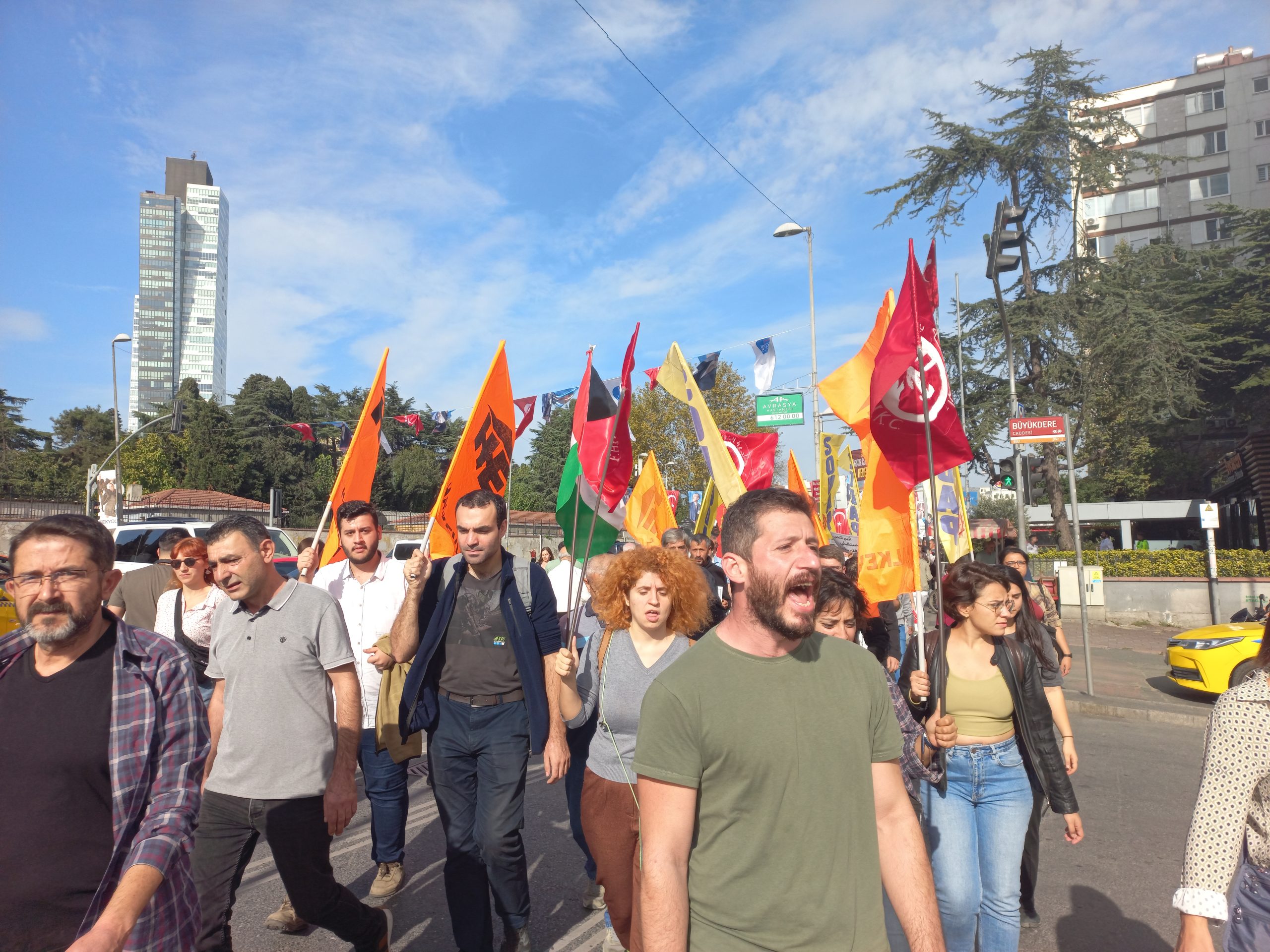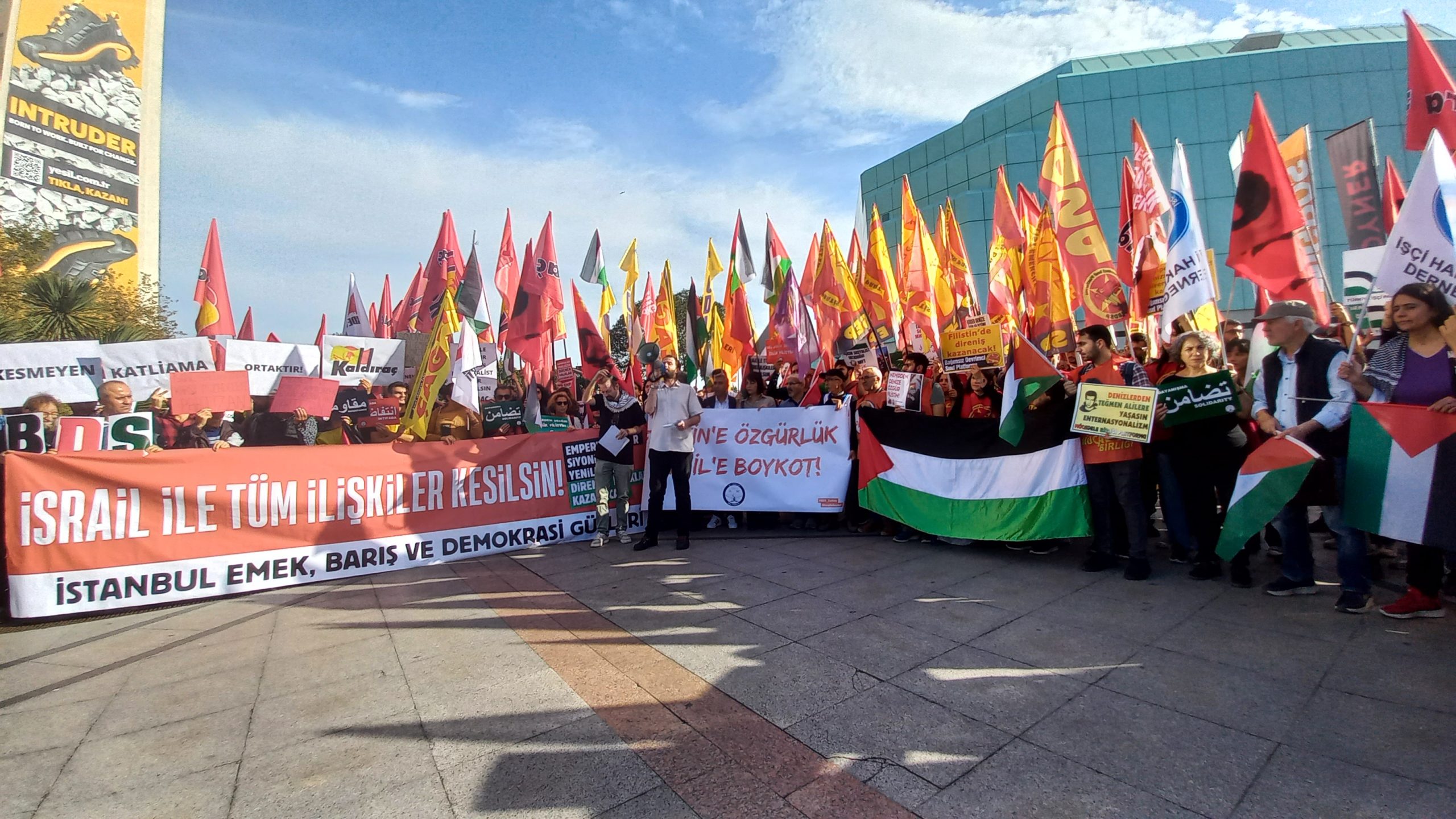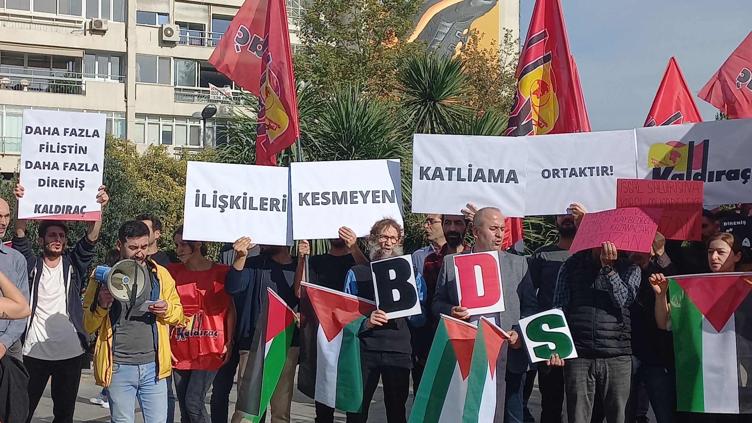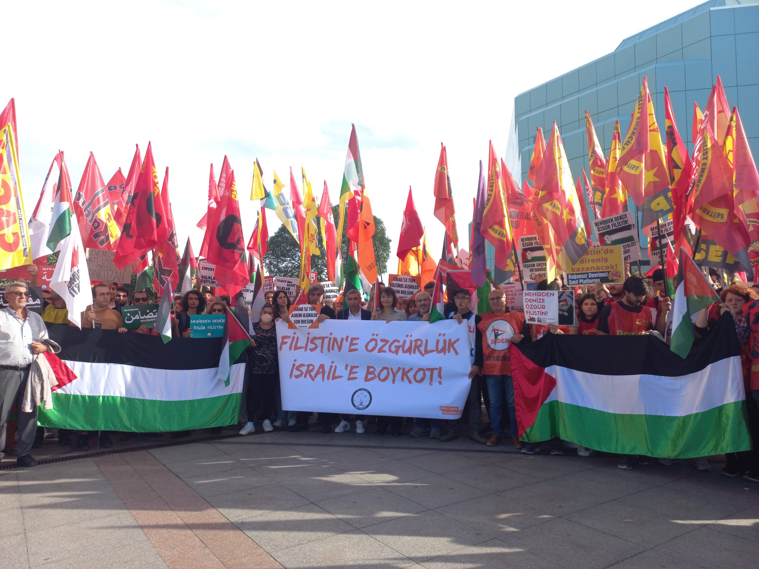 BDS Türkiye’nin çağrısıyla bir araya gelen İstanbul Emek, Barış ve Demokrasi Güçleri, İsrail işgal güçlerinin Gazze Şeridi’ne yönelik saldırılarını bugün (22 Ekim) protesto etti.
