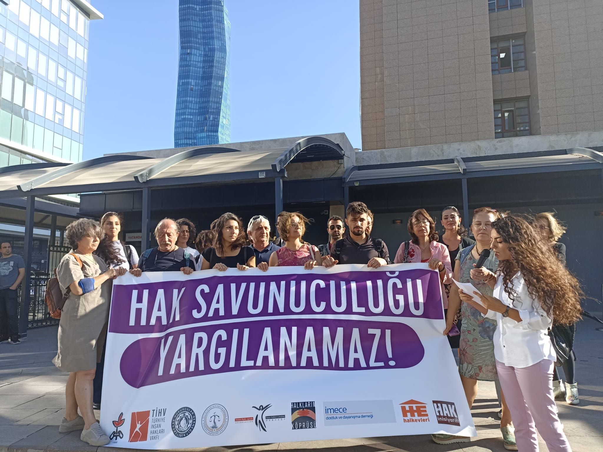 İnsan Hakları Derneği İzmir Şubesi, Türkiye İnsan Hakları Vakfı İzmir Temsilciliği, Çağdaş Hukukçular Derneği İzmir, Özgürlük İçin Hukukçular Derneği İzmir Şubesi, İnsan Hakları Gündemi Derneği, Halkların Köprüsü Derneği, İmece Dostluk ve Dayanışma Derneği, İzmir Halkevi, Hak İnisiyatifi tarafından adliye önünde bir açıklama yapıldı.