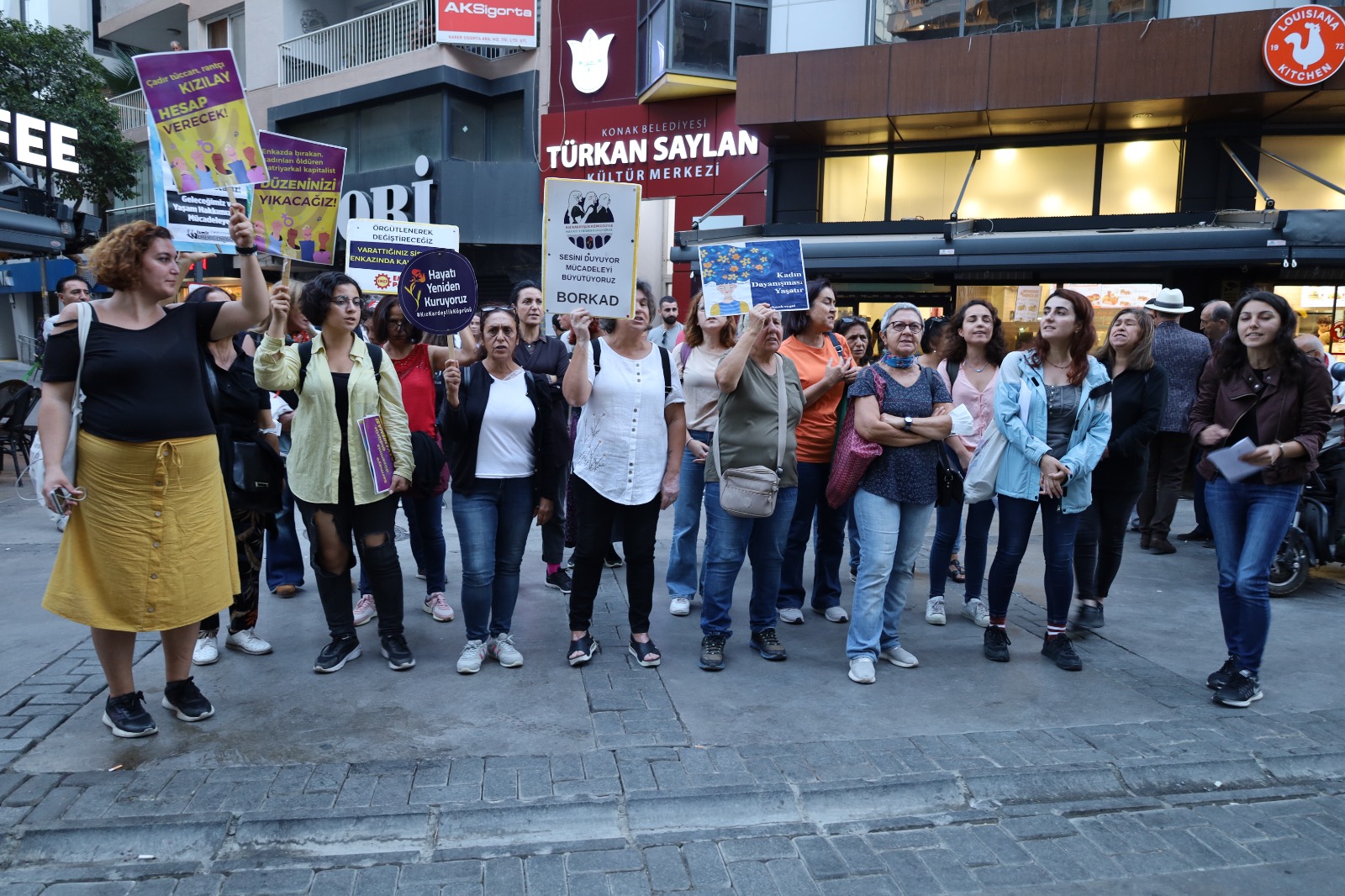 İzmir Kadın Platformu, 6 Şubat günü meydana gelen depremlerin sekizinci ayında Alsancak’ta bulunan Türkan Saylan Kültür Merkezi önünde bugün (6 Ekim) saat 18.30’da bir araya gelerek eylem yaptı. Eylemde depremlerin ardından kadınların ve LGBTİ+’ların sorunlarının halen çözülmediği ifade edildi. Deprem bölgesindeki kadınların talepleri sıralandı. Eylemde İzmir’den deprem bölgesine selam gönderildi.