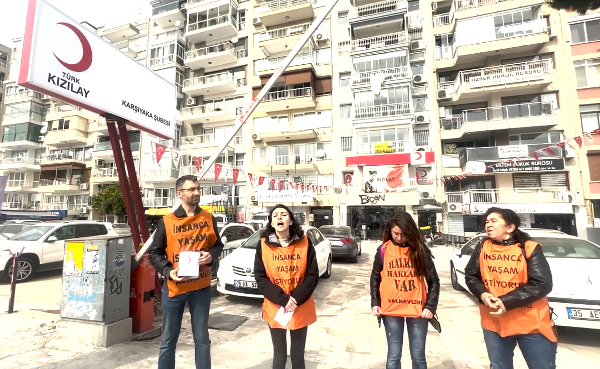 Kızılay önünde deprem bölgelerinde çadır ihtiyacı giderilmeden AHBAP’a çadır satmasını protesto eden Halkevciler, “Saraydan Kızılaya hırsız var. Bizden aldıklarınızı geri alacağız. Hesap soracağız. Sizden de saraydaki hırsızlardan da hesap sormak için her gün mücadele edeceğiz” ifadelerini kullanmıştı.