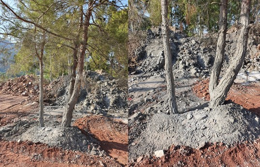 Bilirkişi raporu çıktıktan 4 ay sonra bölgeye gittiğimde alelacele beton dökülmeye başlandığını gördüm. Koruma altındaki ağaçların dibine çimentolar dökülmüştü. Belki de en vahimi Marmaris’in en güzel azmağını kurumak için gösterilen olağanüstü çabaydı. Üzerine inşaat yapacakları için sulak araziye çimento enjekte ediliyordu.