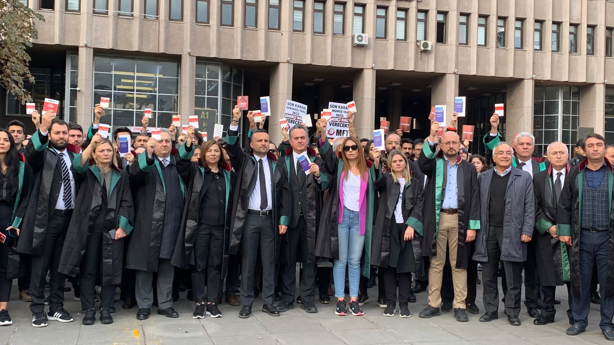 Bu sebeple burada tekrar Türkiye’nin dört bir yanından gelen ve yıllardır hukukun üstünlüğünü savunarak yurttaşların hak ve özgürlüklerini teminat altına almaya çalışan avukatların örgütleri Barolar, ve Barolar birliği olarak hatırlatıyoruz. Anayasa’ya aykırı işlem yapmaktan hemen vazgeçin, Anayasa 153. maddesi, Anayasa Mahkemesi kararlarının bütün yargı organlarını bağlayacağını açık şekilde düzenlemiştir. Hemen, bugün Anayasa’nın 153. maddesi gereğince Anayasa Mahkemesi kararını uygulayın. Bütün meslektaşlarıma bu ülkede hukuku, Anayasa’yı, ve en temelde yurttaşlarımızın adalete erişimi için savunmayı temsil ettiklerini için tekrar sizin huzurlarınızda teşekkürlerimi iletiyorum.