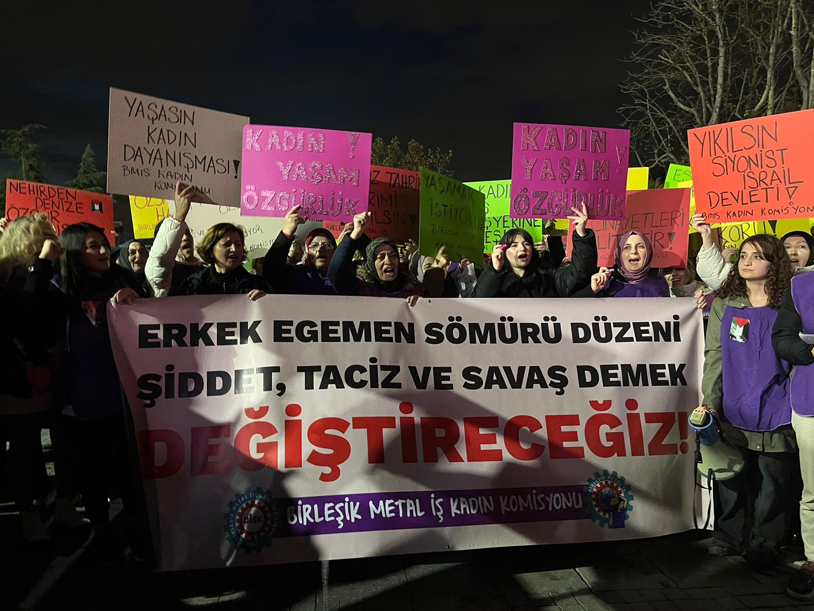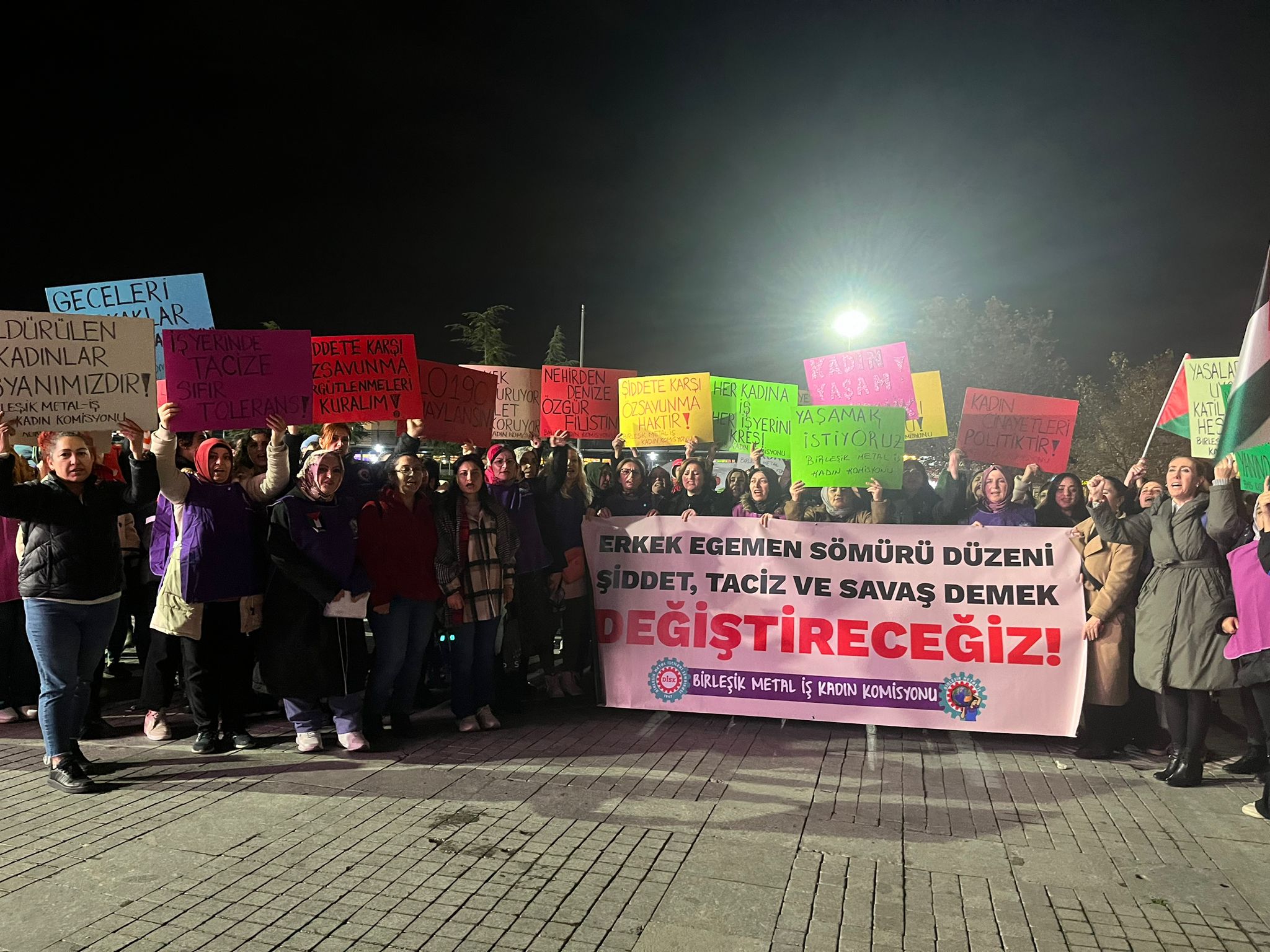Bizler metal işçisi kadınlar şiddete, cinsel tacize, kadın cinayetlerine, erkek egemen düzene ve eşitsizliğe karşı sesimizi yükseltiyoruz. Tüm demokratik kitle örgütlerini, sendikaları, siyasi partileri kadına yönelik şiddete ve tacize karşı harekete geçmeye çağırıyoruz.