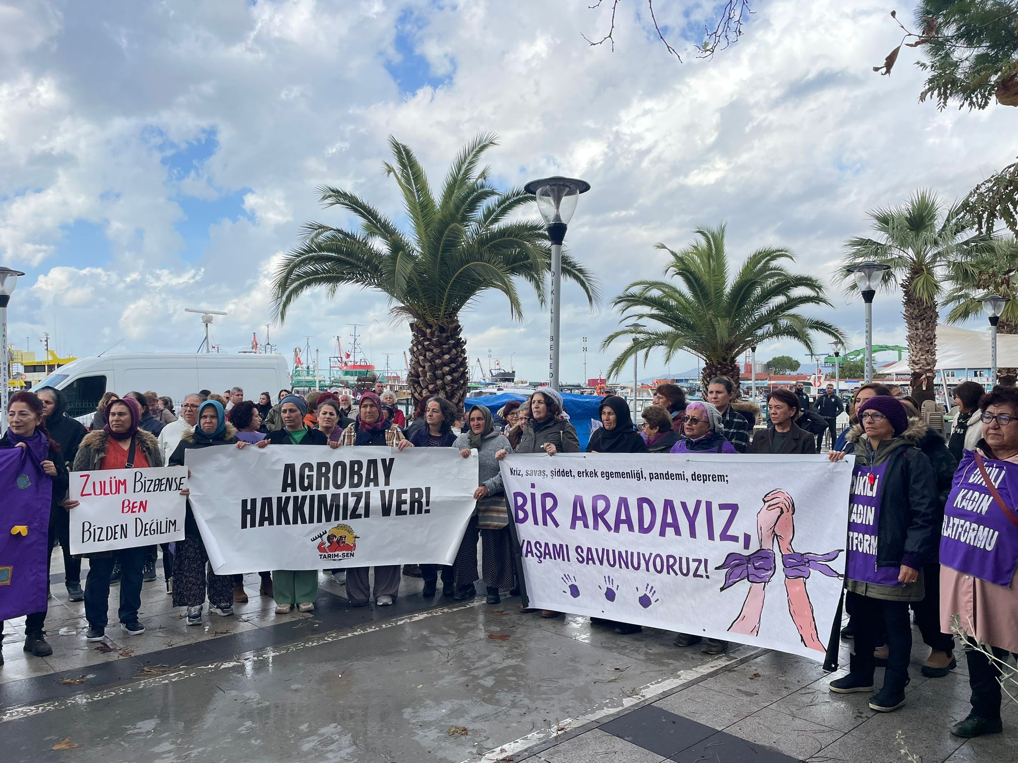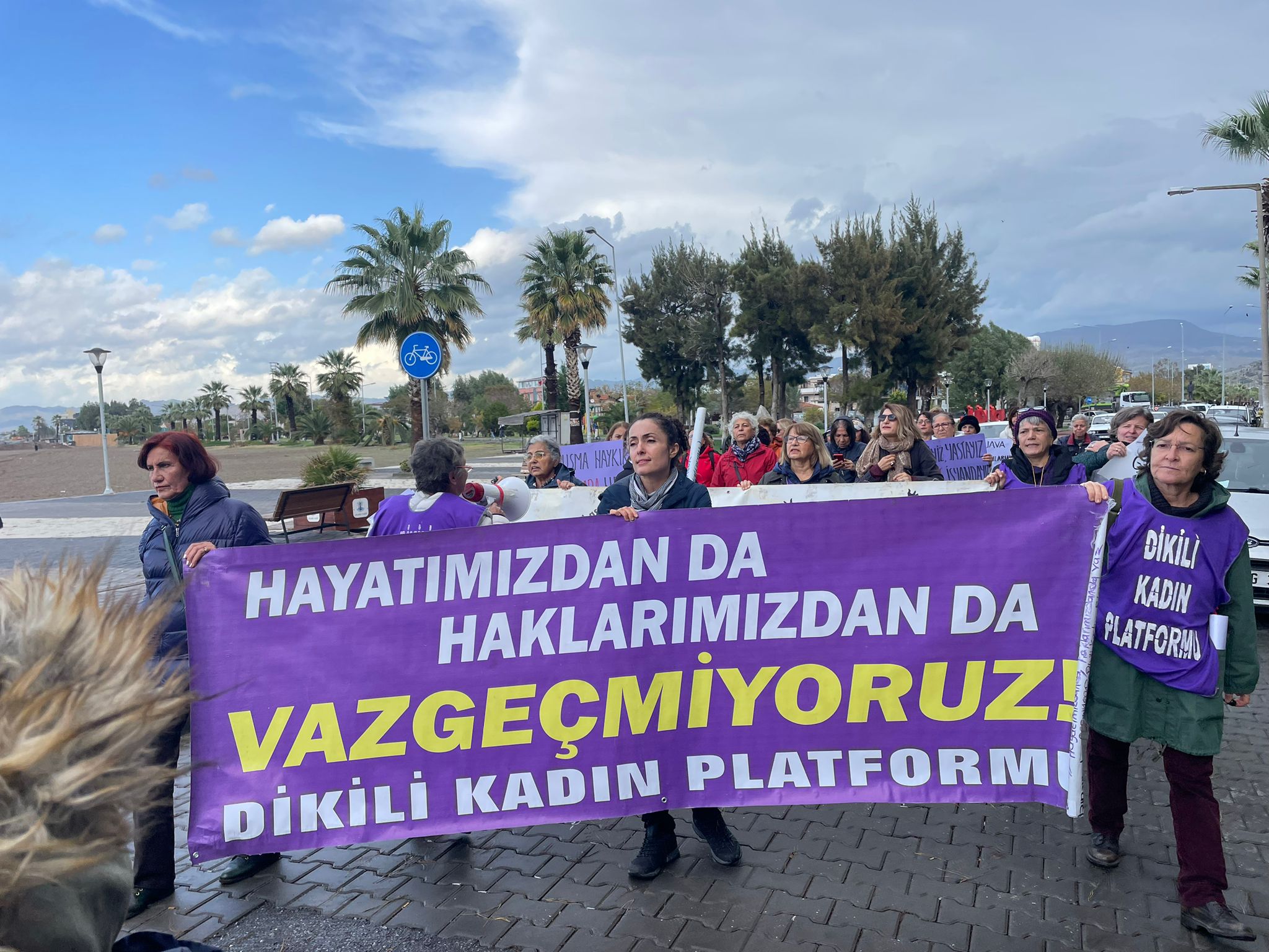 Dikili Kadın Platformu’nun çağrısıyla Bülent Ecevit Meydanı’na yürüyen kadınlar basın açıklaması yaptı. Dikili’deki eyleme 3 ayı aşkın süredir direnişte olan Agrobay işçileri de katıldı. Eylemde söz alan kadınlar, kendilerinin de kadın olduğunu ve değer görmek istediklerini ifade etti.