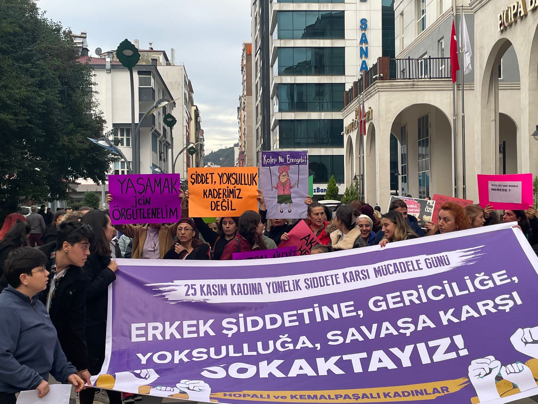 Hopalı ve Kemalpaşalı kadınlar Hopa Parkı'ndan Hopa Meydanı'na yürüdü. Meydana basın açıklaması yapıldı