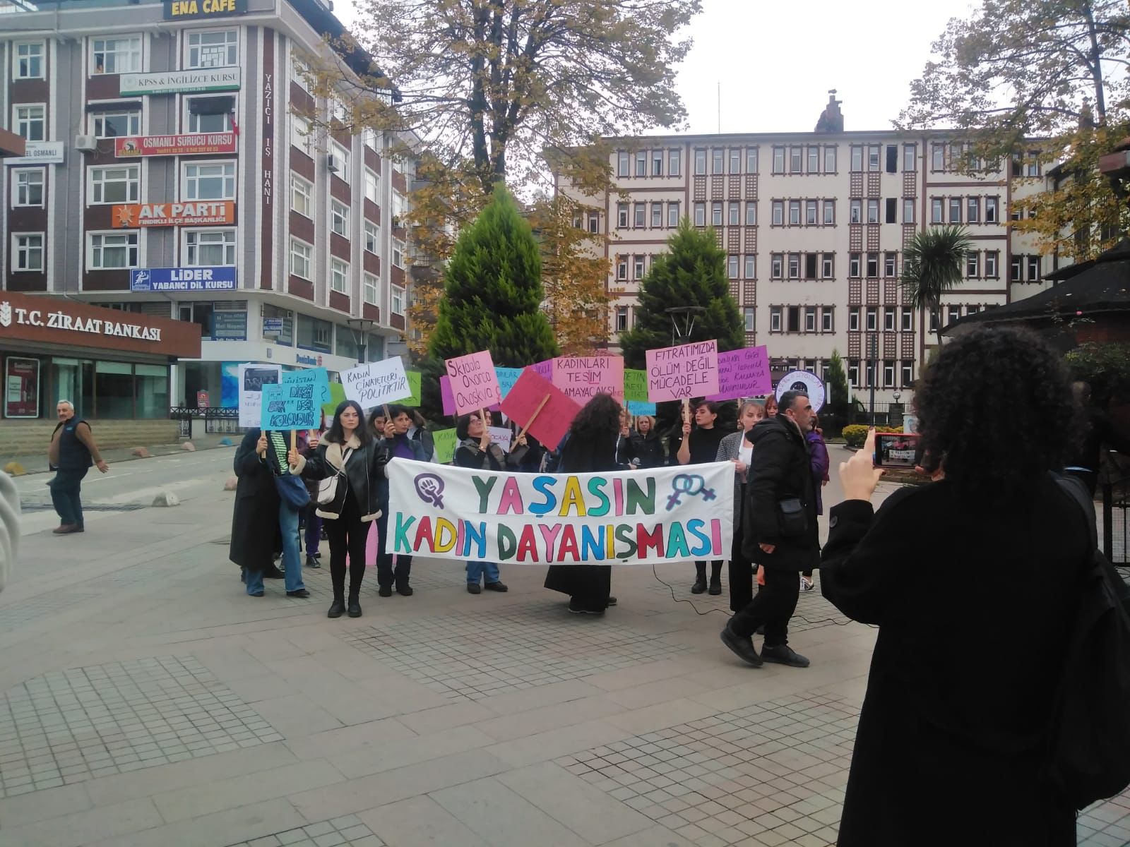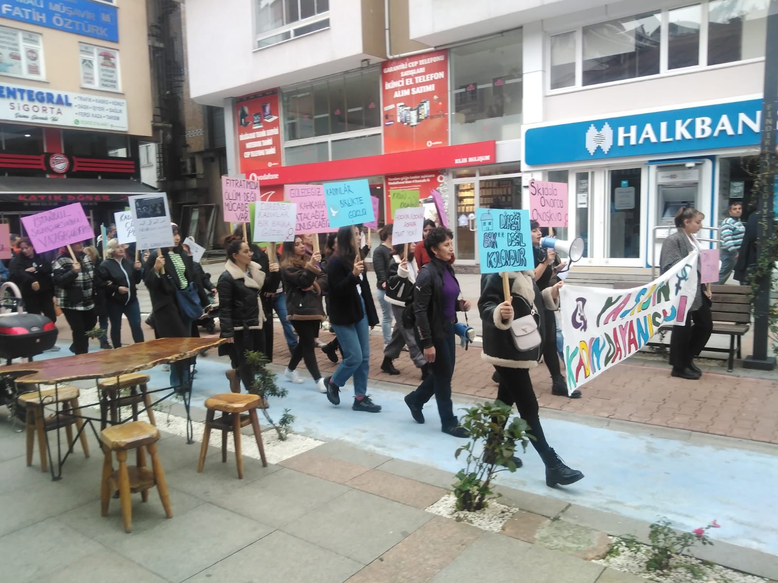 Trabzon Demokratik Kadın Platformu’nun çağrısıyla kadınlar “Başkaldırıyoruz şiddete ve sömürüye” diyerek Maraş Caddesi’nden Meydan Park’a yürüdü. Meydan Park’ta basın açıklaması yapıldı.