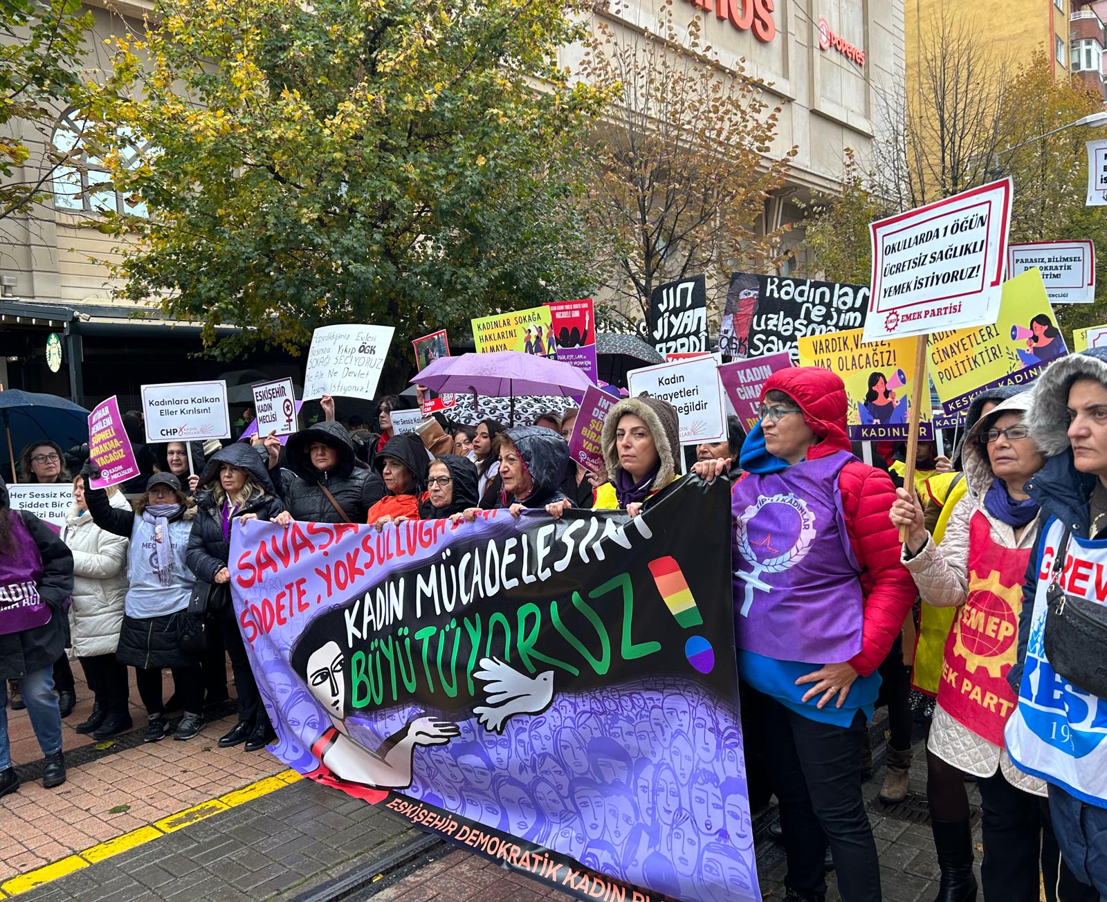 25 Kasım Kadına Yönelik Şiddetle Uluslararası Mücadele Günü’nde kadınlar ve LGBTİ+’lar yurdun dört bir yanında şiddetli yağmur, sert rüzgarlar ve fırtına uyarılarına rağmen sokaklara döküldü. Ülkemizin dört bir yanındaki savaşlara, halka dayatılan yoksulluğa, cezasızlıkla tırmandırılan erkek şiddetine, haklarına sahip çıkan kadınlara uygulanan devlet şiddetine, gerici kuşatmaya, aile merkezli politikalarla kendilerinin yok sayılmasına karşı kadınlar sloganlarıyla, pankartlarıyla, dövizleriyle eylemdeydi.