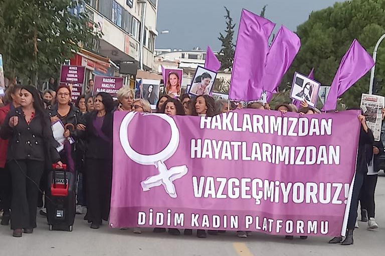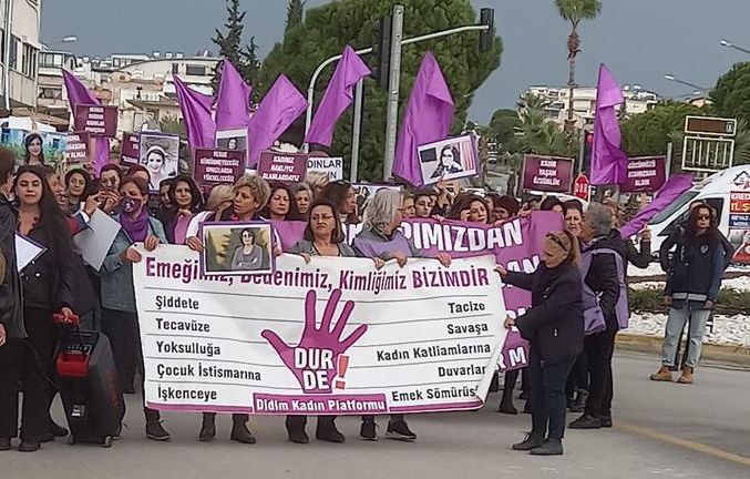 Didim Kadın Platformu’nun çağrısıyla kadınlar eski adliye önünden toplanıp Ziraat Bankası önüne yürüdü. Ziraat Bankası önünde basın açıklaması yapıldı.