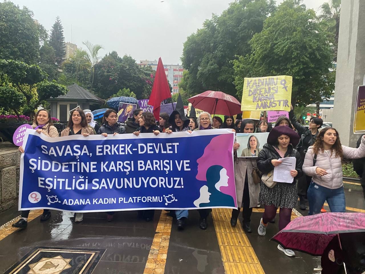 Adana Kadın Platformu’nun çağrısıyla kadınlar yoğun yağışa rağmen İnönü Parkı’ndan Atatürk Parkı’na yürüdü. Siyasi kadın tutsakların ismini anıp burada diyen kadınlar Atatürk Parkı’nda basın açıklaması yaptı.