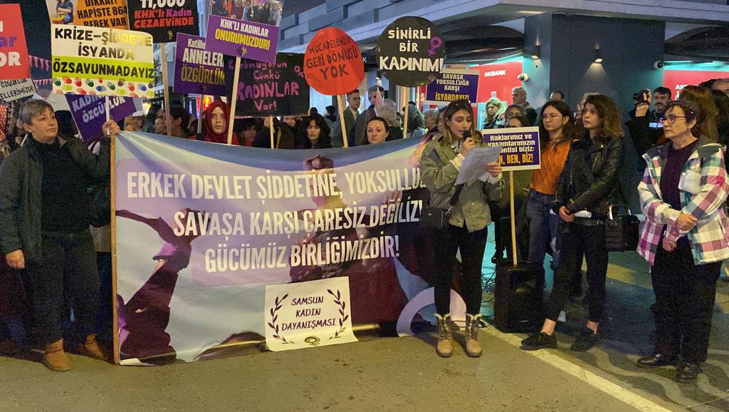 Samsun Kadın Dayanışması’nın çağrısıyla kadınlar eski vergi dairesi önünde buluşup Çiftlik Akbank önünü kadar yürüdü. Akbank önünde basın açıklaması yapıldı.