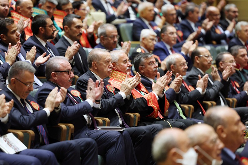 Erdoğan’ın “İki yüksek yargı organı arasında çıkan görüş ayrılığı” ifadesini iki kez tekrarlaması, sorunu, “İki yüksek yargı organının görev alanlarına ilişkin görüş farklılığı” olarak tanımlaması önemlidir. 1960’tan beri, başta yasama olmak üzere rejimin tüm kurumlarını ‘anayasaya uygunluk’ bakımından denetleme görevini üstlenen, bu yanıyla Türkiye devletinin bir ‘hukuk devleti’ olma iddiasının denetim organı olarak rejimde özel bir yeri olan Anayasa Mahkemesi, bir başka üst-yargı kurumuyla eşitlenmekte, yaşanan sorun bir fikir ayrılığı çekişmesi gibi sunulmaktadır. Bu haliyle durum, 2016 sonunda Bahçeli’nin “fiilen zaten başkanlık sistemindeyiz, gereğini yapalım” diyerek yaptığı referandum çağrısını hatırlatıyor. Saray etrafında tahkim edilen rejim, eriştiği noktada önünde engel olarak gördüğü ‘kalıntıları’ temizlemek istemektedir. Erdoğan bu yolda MHP’nin desteğini almanın güvenini hissediyor, İyip ve Akşener’e de ‘sürece katılacak diğer partiler’ başlığı altında selam gönderiyor.