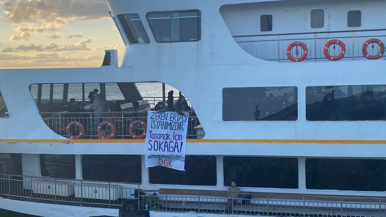 Özgür Genç Kadın, 25 Kasım Kadına Yönelik Şiddetle Uluslararası Mücadele Gününe doğru giderken Kadıköy-Eminönü vapurunda bir eylem yaptı. Zeren Ertaş, Sezen Naz Reyis, Elif Zamir Khan ve diğer ihmal sonucu hayatını kaybeden, intihara sürüklenen kadınlar ve gençler için ses çıkartan ÖGK “Zeren Ertaş isyanımızdır. Yaşamak için sokağa” yazılı pankart açtı.
