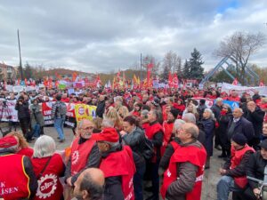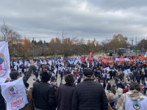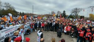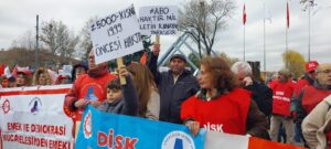 Onların kısa-orta-uzun vadeli tüm planları halkı yoksullaştırma, zenginlerin masasını donatma planıdır. Bütün bu olumsuzluklara karşı bugün burada emeğinn meydanındayız. Bu ülkenin emeklileri işçiler için, emekçiler için, haklarımız için, çocuklarımızın torunlarımızın hakları için bir arada ve sokaktayız. Onlar bizleri açlığa, yoksulluğa, sefalete, umutsuzluğa muhtaç ediyor. Bizler ise onları tarihin kara sayfalarına muhtaç etmekle yükümlüyüz, bundan dolayı buradayız.