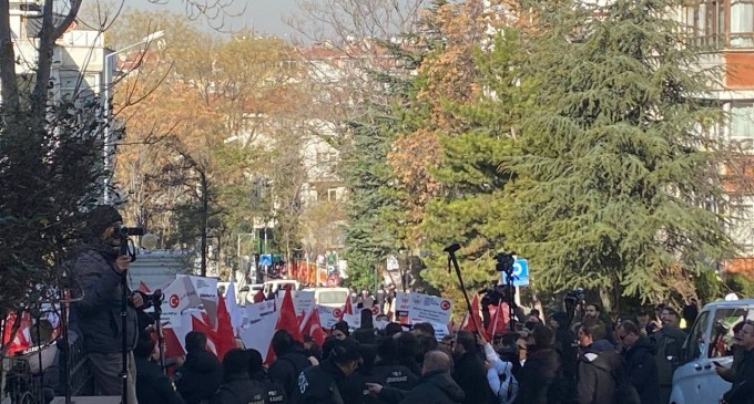 Ellerinde Türk bayrakları olan en az 50 kişilik bir grup Ankara’da DEM Parti Genel Merkezi önünde toplandı. Grubun önce tekbir getirip sonra küfür ettiği belirtildi.