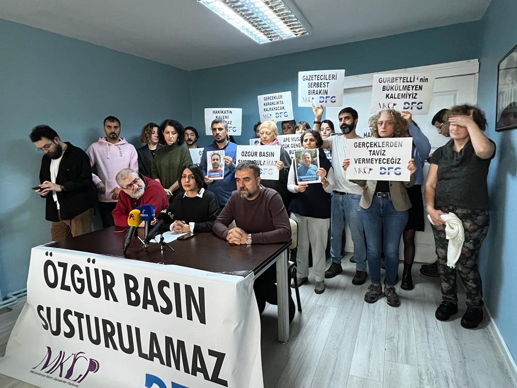 Tutuklu gazeteci arkadaşlarımız Abdurrahman Gök, Sedat Yılmaz ve Dicle Müftüoğlu için DFG (@DFGDernegi) ve MKGP (@mkgplatform) ile birlikte basın açıklaması düzenledik.