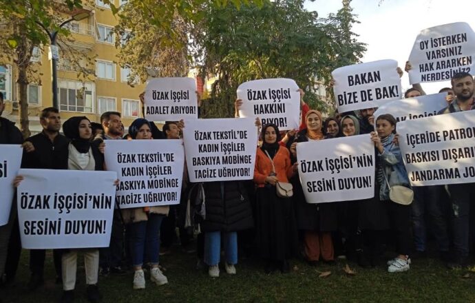 Kadın işçiler aile, akraba, konu komşu, aşiret, patron vs. pek çok yerden kıskaca alınmış durumda. Aileler tam olarak şunu söylüyor: “Bizim kızımız rezil oldu, konu komşu akrabalar arıyor. Herkes ‘senin kızın orada, burada’ diyor. Yarın öbür gün bu kızı gelip kimse istemez. Ne gerek var bu kadar rezilliğe, çalışmasına gerek yok. Kadın dediğin zaten ne diye çalışıyor? Başımıza bela oldular.” Yani işinde değilse evinde oturmalılar. Erkekler için aynı şeyler söylenmiyor. Kadın işçiler inanılmaz zorluklarla karşılaşıyorlar. Yani bu kadınlar çalışmak için bile müthiş bir mücadele vermişler. Kendilerine nefes alacak bir alan olarak görmüşler ve bunu ailelerine kabul ettirmişler. Direkt şunu söyleyen kadın işçiler var: “İşyeri benim tek sosyal ortamım.” Yani bir işyerinde çalışıyor olmak bile bir özgürlük mücadelesi ve şu anda bu mücadele tek başına yasal bir hakkın savunulması değil. Kadın işçilerin bir parça da olsa kazandığı özgürlüklerini kaybetmeme mücadelesi. Burayı kaybettiğinde artık kapının önüne bile çıkamayacağını söyleyenler var. O yüzden de Özak Tekstil direnişi sadece bir sendikal mücadele değil kadınlar için. Ve bunu çok farkında olarak bildikleri için her şeyi göze alarak direnmeye devam ediyorlar.