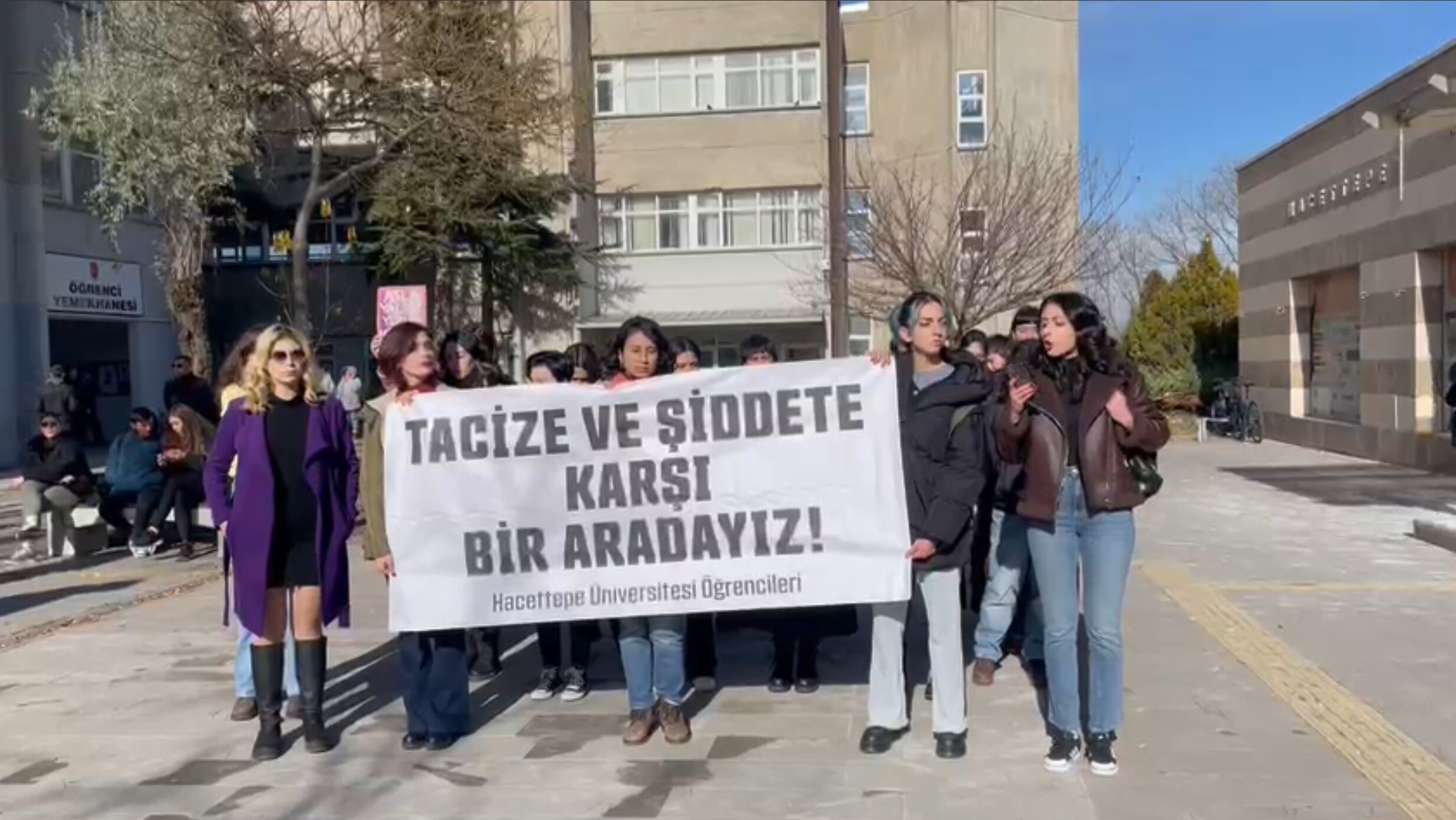 Hacettepe Üniversitesi öğrencisi kadınlar, okulda son zamanlarda sıkça rastlanır hale gelen taciz ve şiddet olaylarına karşı Beytepe Kampüsü’nde basın açıklaması yaptı. Öğrenciler; okulda tacize uğrayan, şiddete maruz kalan hiçbir kadın ve LGBTİ+ Hacettepeli’nin yalnız olmadığını söyledi