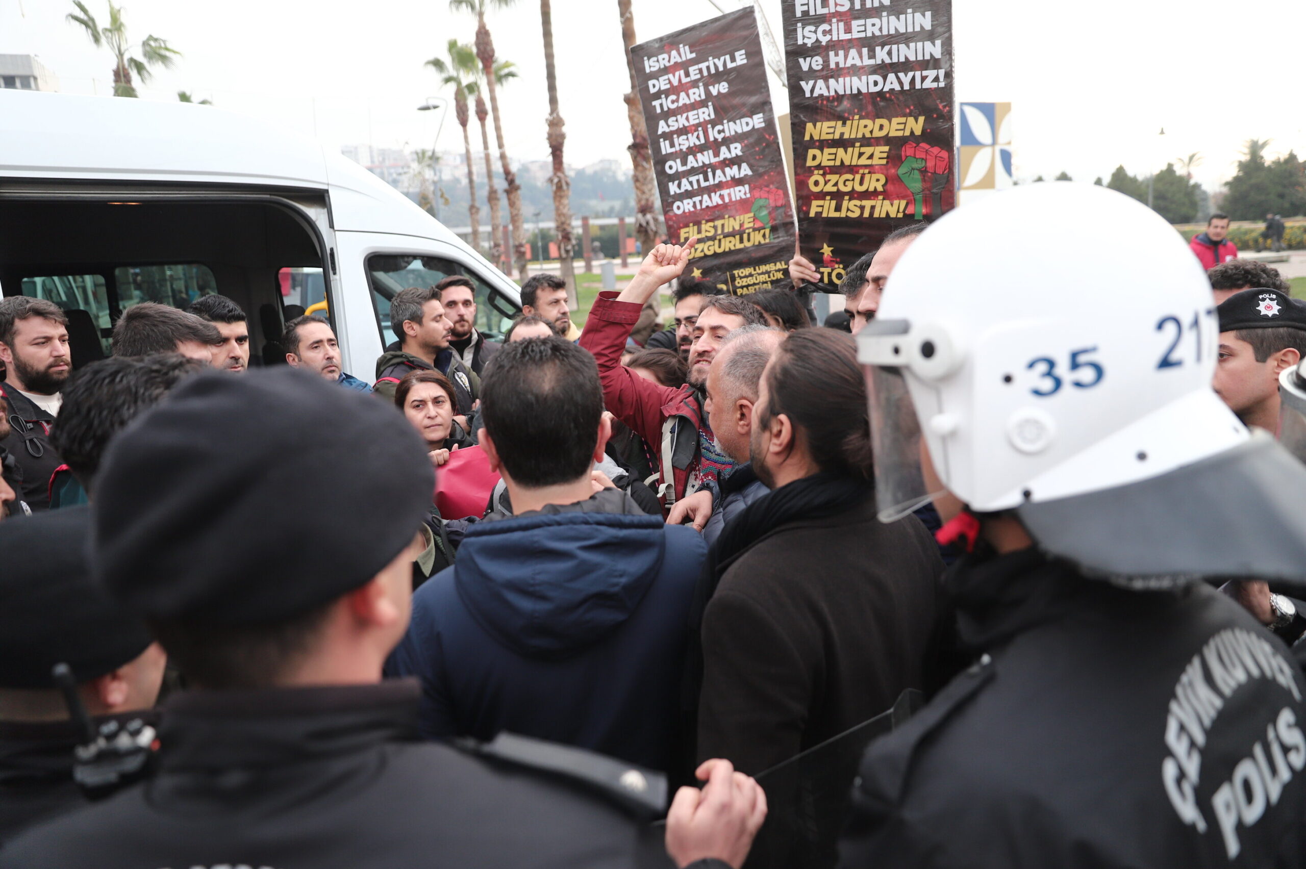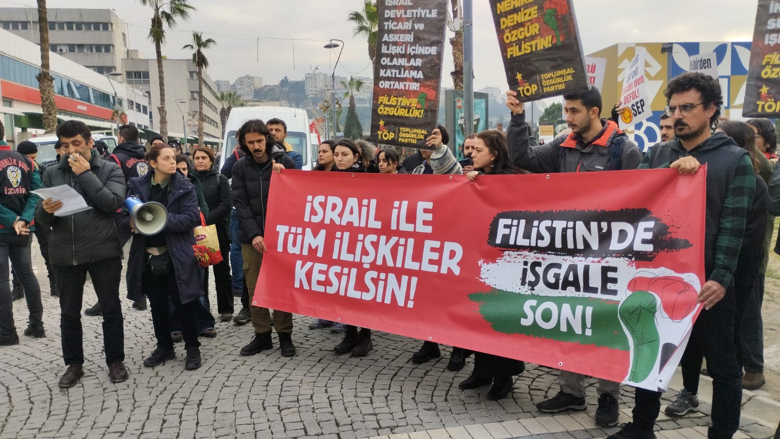 İzmirliler açıklamayı tamamlamak istediğini, Filistin’de işgalin sona erdirilmesi taleplerini ifade etmek istediklerini söylese de polis saldırısıyla 21 kişi gözaltına alındı.