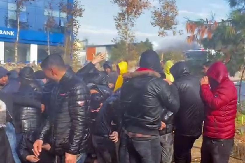 Ardından ise gözaltına alınan arkadaşlarının serbest bırakılması talebiyle bekleyişlerini sürdüren işçilere jandarma müdahale etti.
