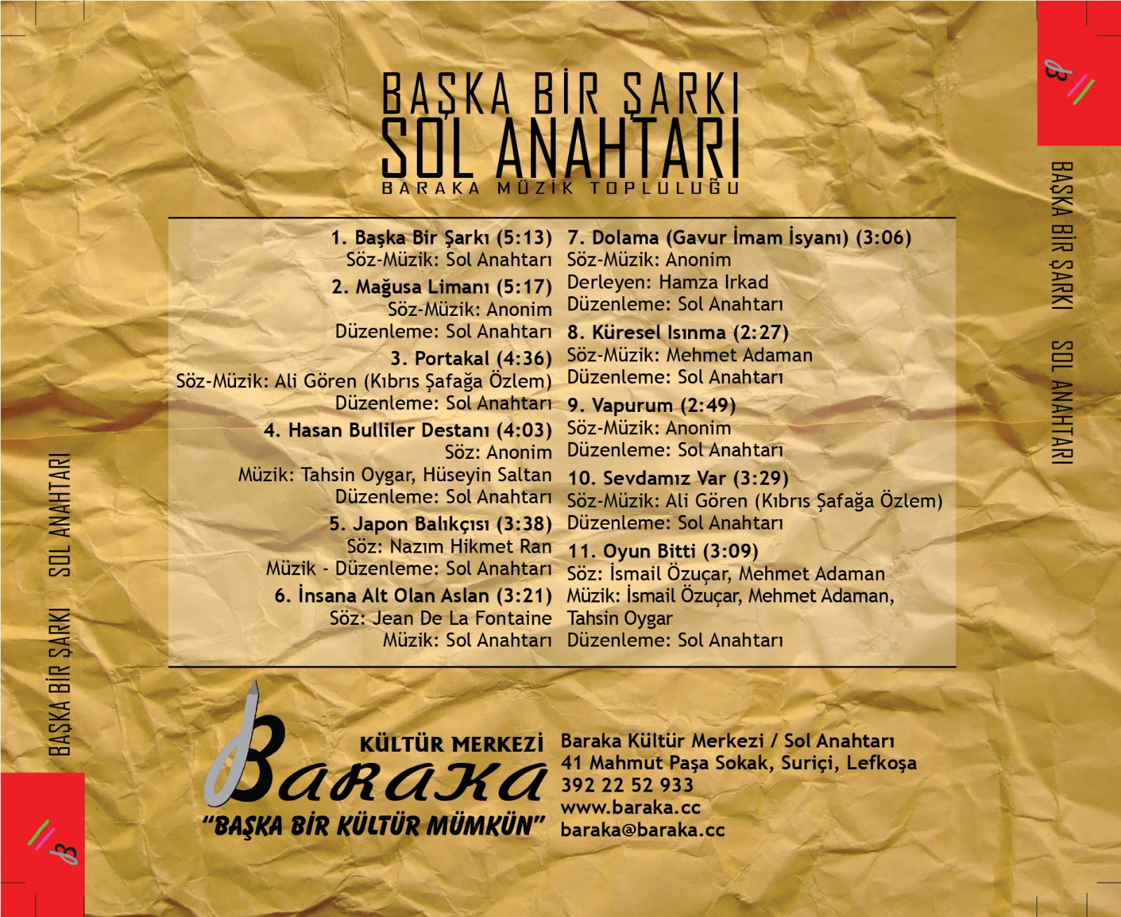 2001 yılında bir gitar ve etrafında şarkı söyleyen bir korodan filizlenen Sol Anahtarı 2004 yılında bir müzik grubuna dönüşüyor. Kurulduğundan bugüne Kıbrıs’ta Baraka Kültür Merkezi bünyesinde çalışmalarını sürdüren grubun şimdiye kadar yayınladığı albümler şöyle: