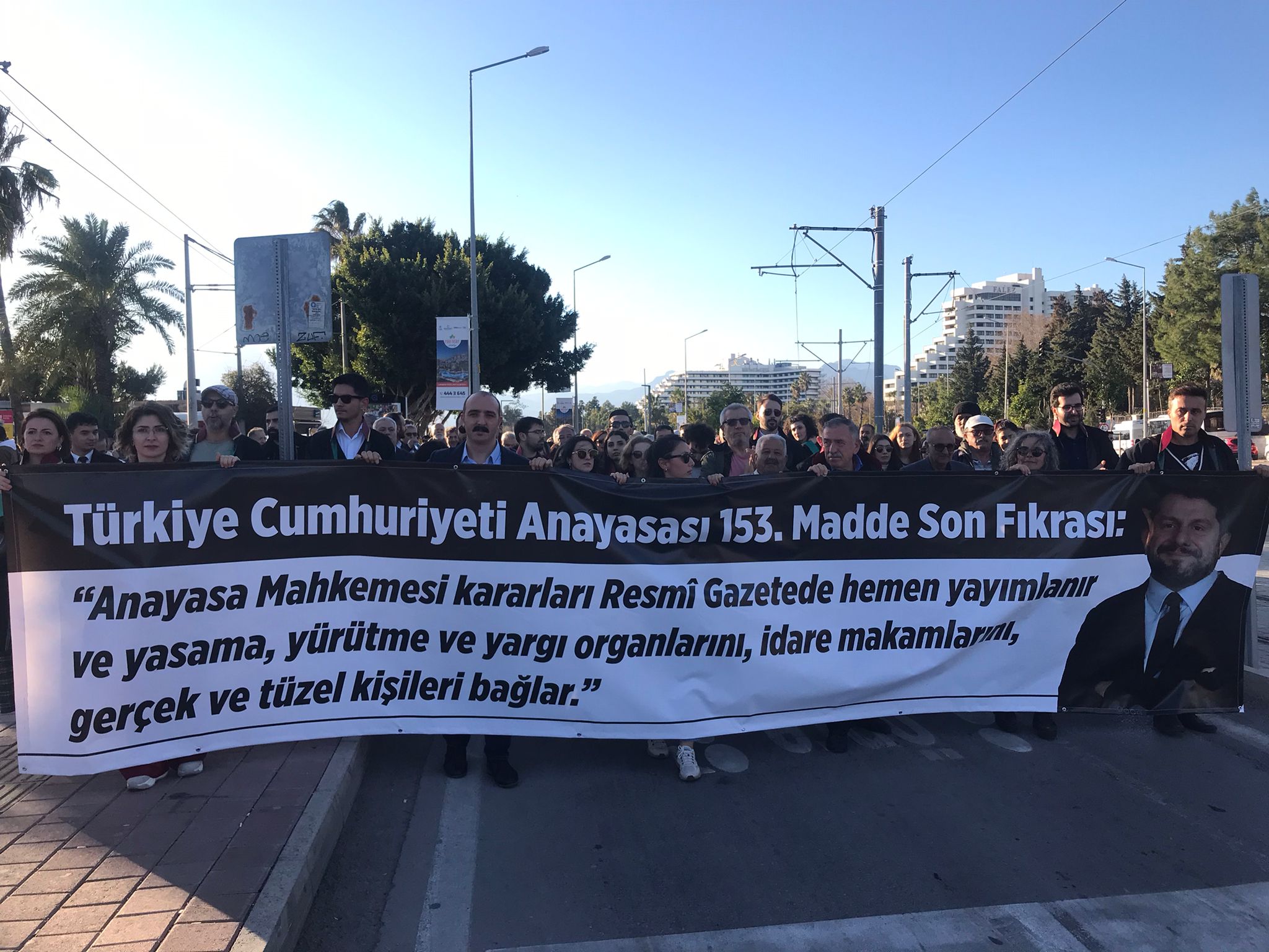 Anayasa Mahkemesi’nin Can Atalay hakkında ikinci kez verdiği hak ihlali kararının da uygulanmamasının ardından Antalya Barosu’nun çağrısıyla eylem yapıldı. Arkeoloji Müzesi önünden Cumhuriyet Meydanı’na yapılan yürüyüşe Antalya halkı da destek oldu.