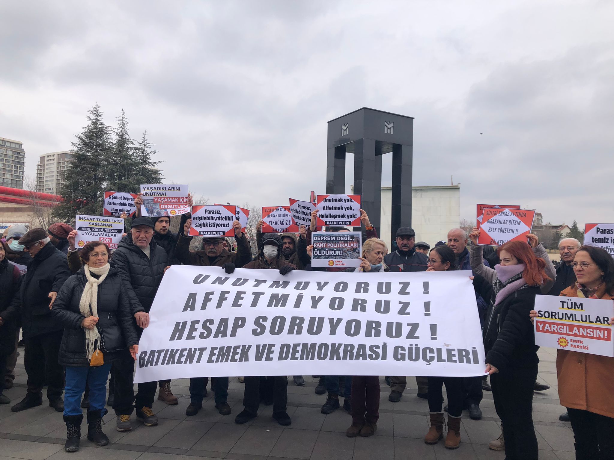 Depremin 1. yılı yaklaşırken Batıkent Murat Karayalçın Meydanı’nda toplanan Batıkentliler basın açıklaması yaptı. Batıkent Emek ve Demokrasi Güçleri’nin çağrısı ile toplanan halk, 6 Şubat’ta savaşa değil yaşama yatırım yapmayan devletin nelere sebep olduğunun görüldüğünü belirtti.