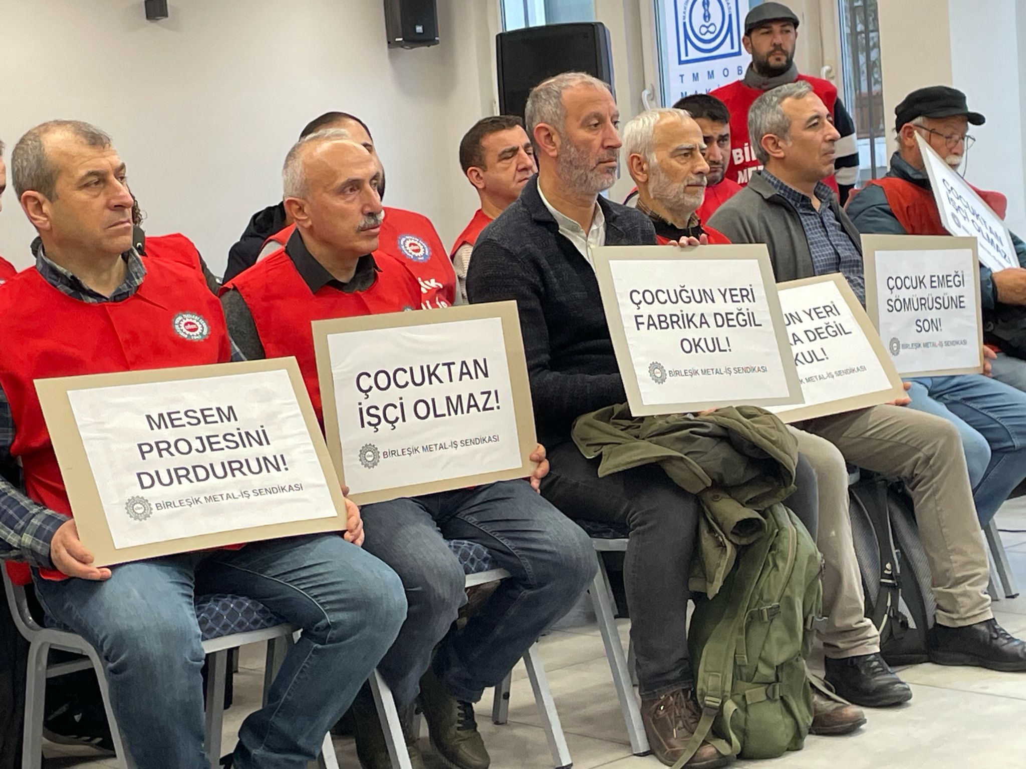 DİSK Birleşik Metal-İş, çocuk işçiliğine yasal kılıf sağlayan MESEM’ler, devlet eliyle teşvik edilen çocuk emeği sömürüsü ve çocuk işçi cinayetleriyle ilgili basın açıklaması yaptı. Açıklamayı okuyan Birleşik Metal-İş Genel Başkanı Özkan Atar “MESEM mesleki eğitim değil, çocuk emeği sömürüsüdür. Başka Ardalar ölmesin” dedi