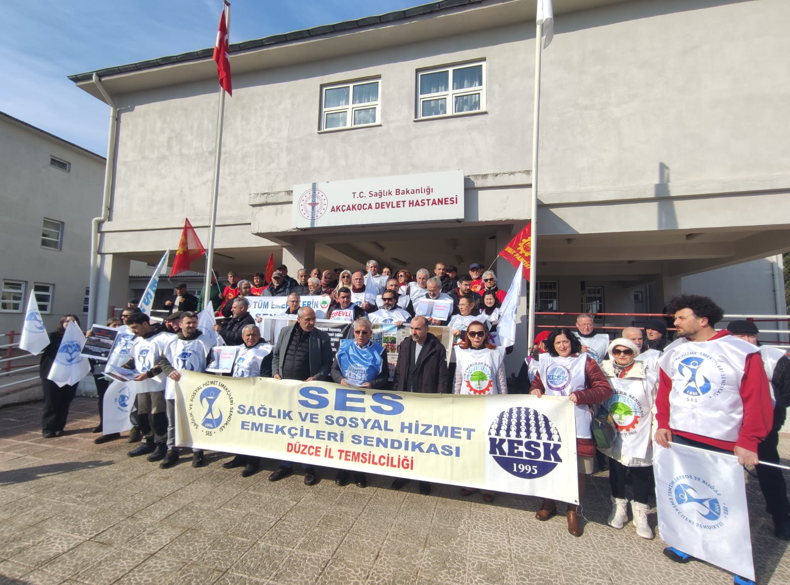 SES Genel Merkezi Eş Başkanı M.Sıddık Akın, Genel Sekreter Ferit Ceylan, Genel Örgütlenme Sekreteri Eylem Kaya Eroğlu, Eğitim Sen Düzce ve Bolu Sube Temsilcileri, SES Bolu Şube ve Sakarya Temsilcileri, SOL Parti, EMEP, Yeşiller ve Sol Gelecek Partisi, Çiftçi Sen Akçakoca Temsilcisi, Tum Emeklilerin Sendikası Bolu, Düzce ve Akçakoca Temsilcileri, Bolu, Düzce, Sakarya ve Akçakoca Tüm Emekli Sen temsilcileri katılımı ile Düzce’de depreme dayanıklı olmadığı tespit edilen ve tahliye edilmesi bildirilen Akçakoca Devlet Hastanesi’nin faaliyetlerine devam etmesine yönelik basın açıklaması yapıldı.