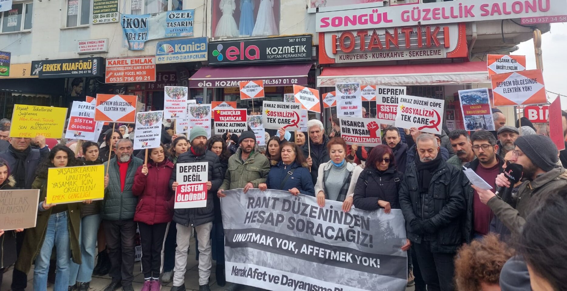 Şubat depremlerinin birinci yıldönümü yaklaşırken Mamak halkı sokaktaydı. Depremzedelerin de konuştuğu eylemde, sorumluların imar affı yasasını geçirenler ve mecliste el kaldıranlar, belediyelerde usulsüzlüklere göz yumanlar, “kader planı” diyenler, hiçbir şey olmamış gibi insanları sandık başına çağıranlar olduğuna işaret edildi