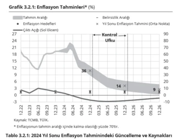 Enflasyon Raporu’nda Mayıs’a kadar tüketici enflasyonunun yatay seyredeceği; doğalgaz sübvansiyonunun kalkmasıyla birlikte Mayıs 2023’te 0.04 açıklanan tuhaf oranın da devre dışı kalmasıyla, rakam verilmemekle birlikte yıllık enflasyonun yüzde 80’e dayanacağı öngörülüyor. (Bkz. Enflasyon Raporu 2024-1 Grafik 3.2.1.) Bir de, döviz rezervi pozisyonu Mayıs 2023 kadar vahim olmasa da, halk arasında seçim sonrası döviz kurlarının sıçrayacağı rivayeti dolaşıyor. Herkesin böyle bir beklentiye girmesiyle, “kendini doğrulayan kehanet” gerçekleşir.. Her iki durum da, dövize akını engellemek, yıl sonu enflasyon hedefini inandırıcı kılmak için yeni bir faiz artışını davet eder.