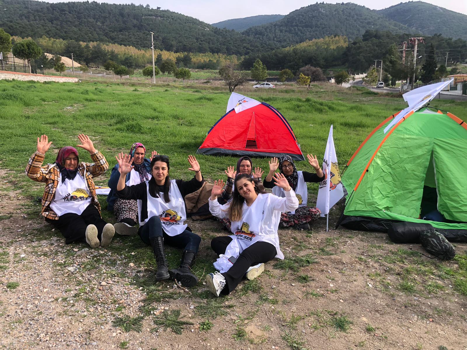 Yürüyüşlerinin 2. gününde Soma’da Ömer Halis Demir İmam Hatip Lisesi yanında konaklayan Agrobay işçisi kadınlar