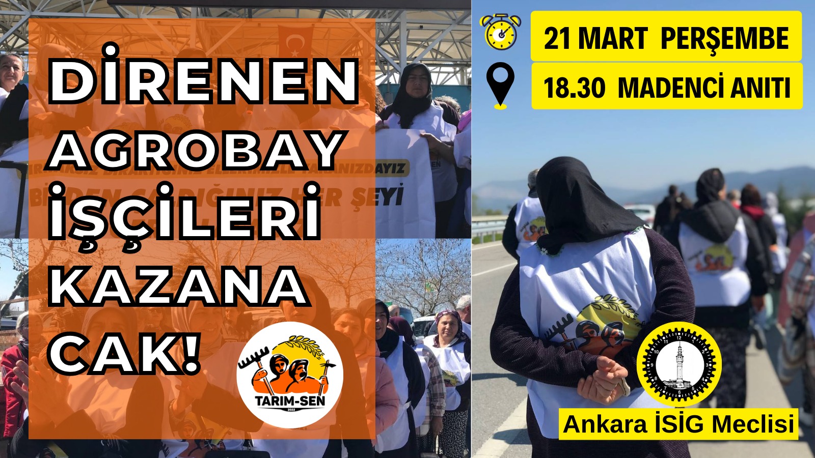 Agrobay işçisi kadınların aylardır yürüttükleri mücadele devam ediyor. Sendikalı olduğu için işten atılan ve alacakları için mücadele eden kadınlar yerel seçimler öncesinde, 18 Mart’ta Ankara’ya yürüyeceklerini duyurmuştu.