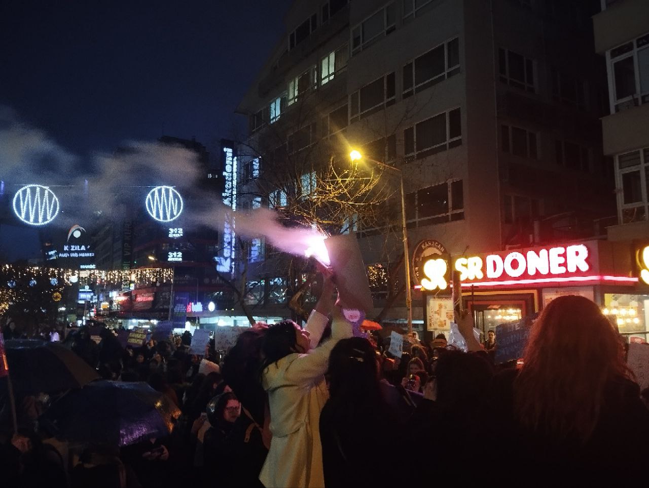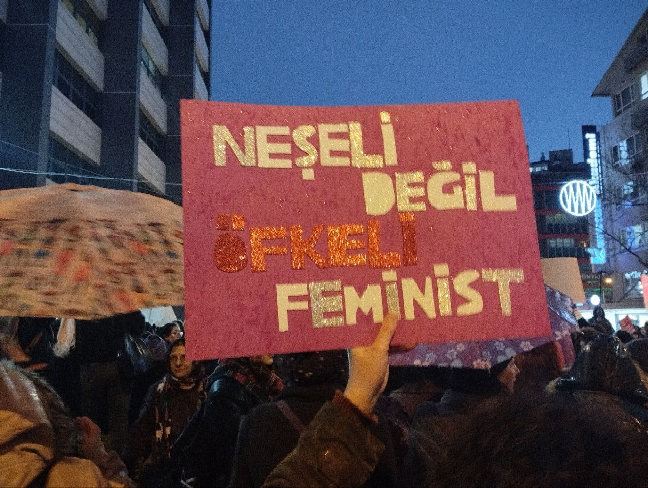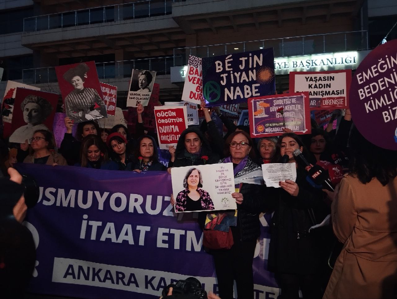 Ankara Kadın Platformu’nun çağrısıyla kadınlar “Savaşa, yoksulluğa, erkek-devlet şiddetine, haklarımıza saldırılara savaşa karşı; susmuyoruz, korkmuyoruz; itaat etmiyoruz!” diyerek Kolej Meydanı’nda toplanıp Sakarya Meydanı’na doğru yürümeye başladı