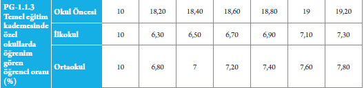 Amaç 1 ve hedeflerinde ise temel eğitimde fırsat eşitliğini sağlamak için özel okula giden öğrenci sayısının artırılmasının hedeflendiği görülüyor.