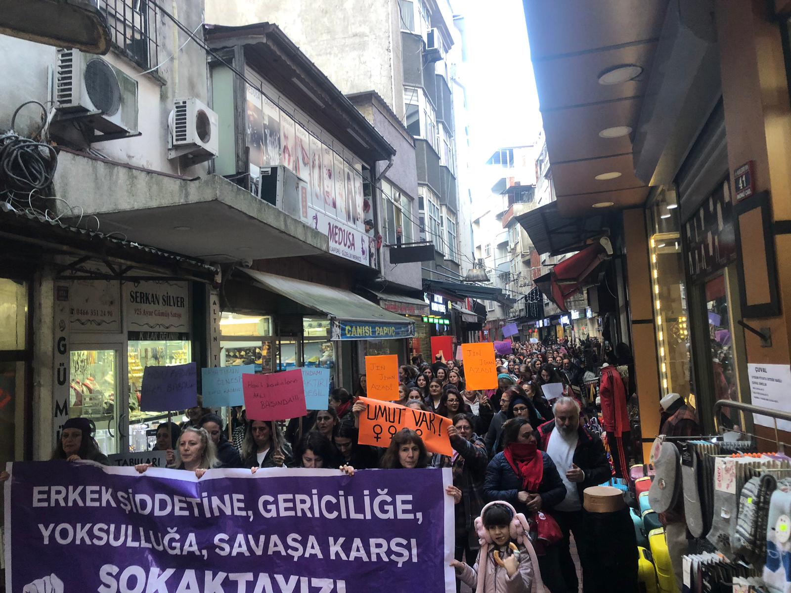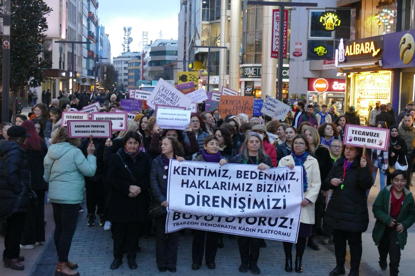 Trabzon Demokratik Kadın Platformu’nun çağrısıyla kadınlar Maraş Caddesi boyunca yürüdü. Trabzon sokakları son yılların en coşkulu kadın eylemlerinden birine sahne oldu. Meydan Park’ta yapılan basın açıklamasının ardından horon oynandı.