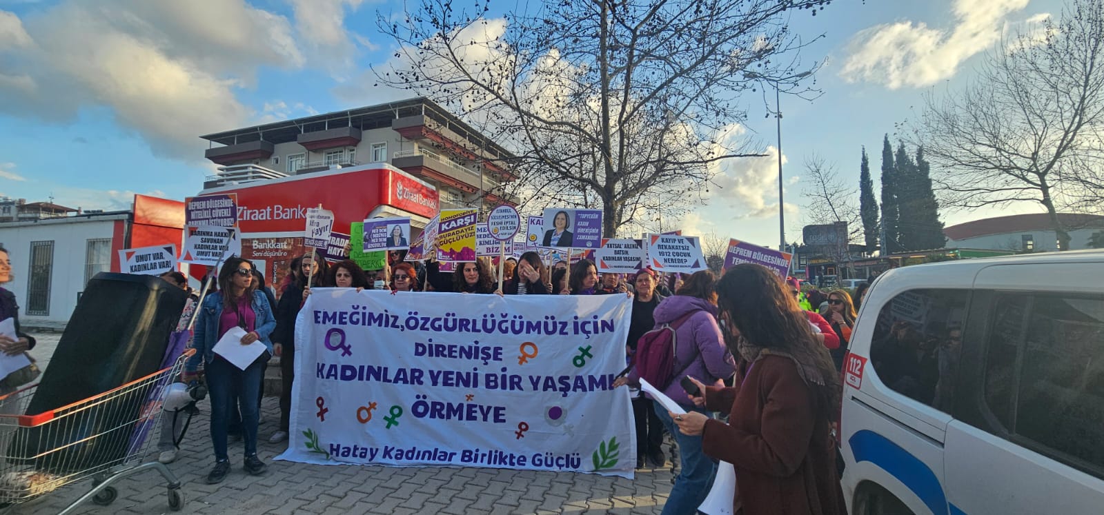 Hatay Kadınlar Birlikte Güçlü’nün çağrısıyla Harbiye yolu üzeri Ziraat Bankası önünde toplanan kadınlar, Aşağıokçular Mahallesi’ne yürüdü. Kadınlar bir sokağa 6 Şubat depreminde kaybedilen Av. Hatice Can’ın adını verdi. Hatice Can için yapılan konuşmada şunlar söylendi:
