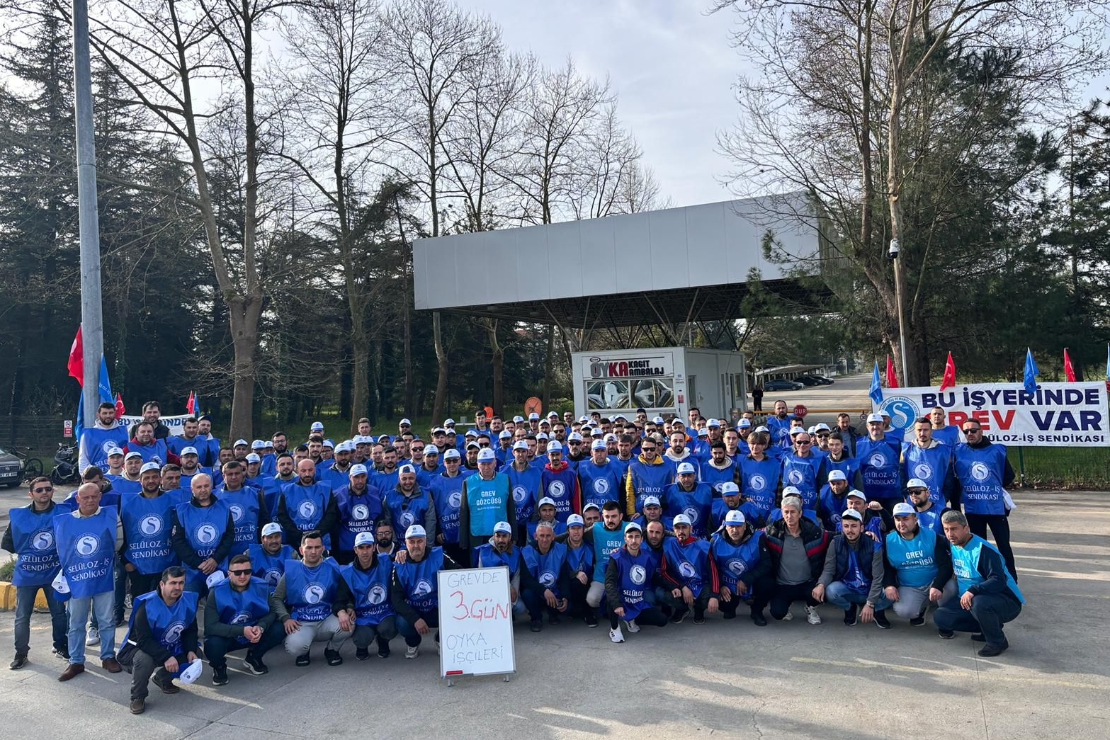 Zonguldak Çaycuma’da bulunan OYKA Kağıt işçilerinin grevi üçüncü gününde. Sabahın erken saatlerinde yeniden fabrika önünde toplanan işçilere oyun havaları ve halaylarla güne başladı. İşçilere destek ziyaretleri de sürüyor