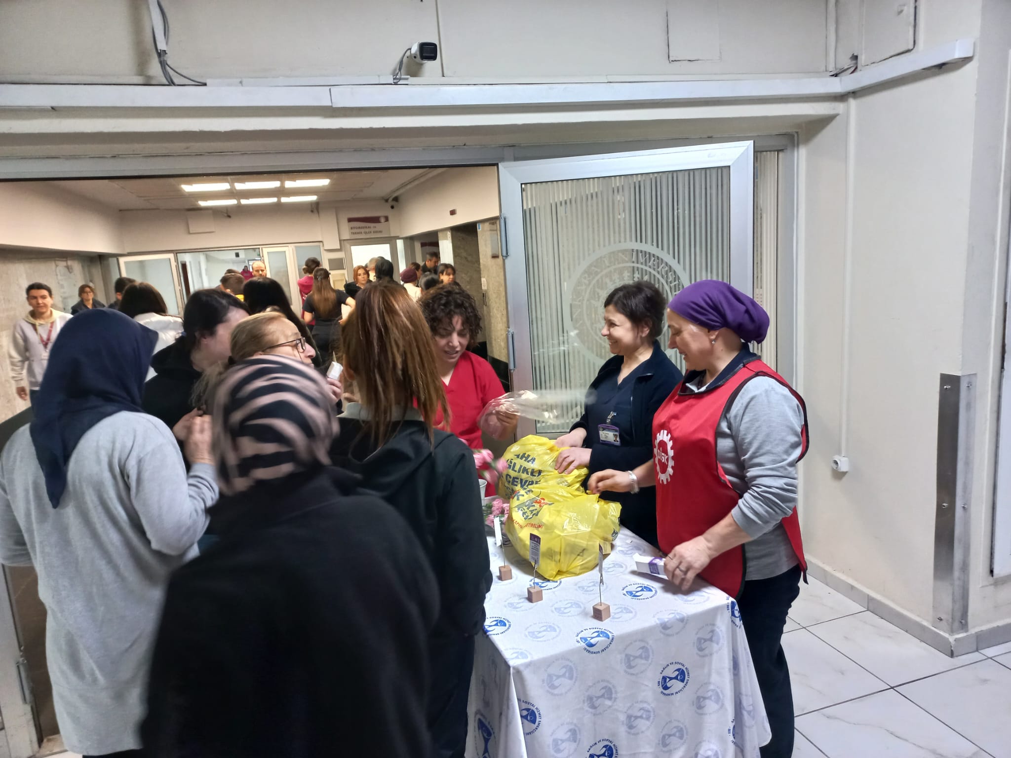 Sağlık emekçisi kadınlar-hastanelerde stant açtı. İbniSina’da yemekhane önünde SES’li kadınlar ve Dev Sağlık İş’ten kadınlar stant açarken Hacettepe Hastanesi’nde kadınlar eylem yaptı