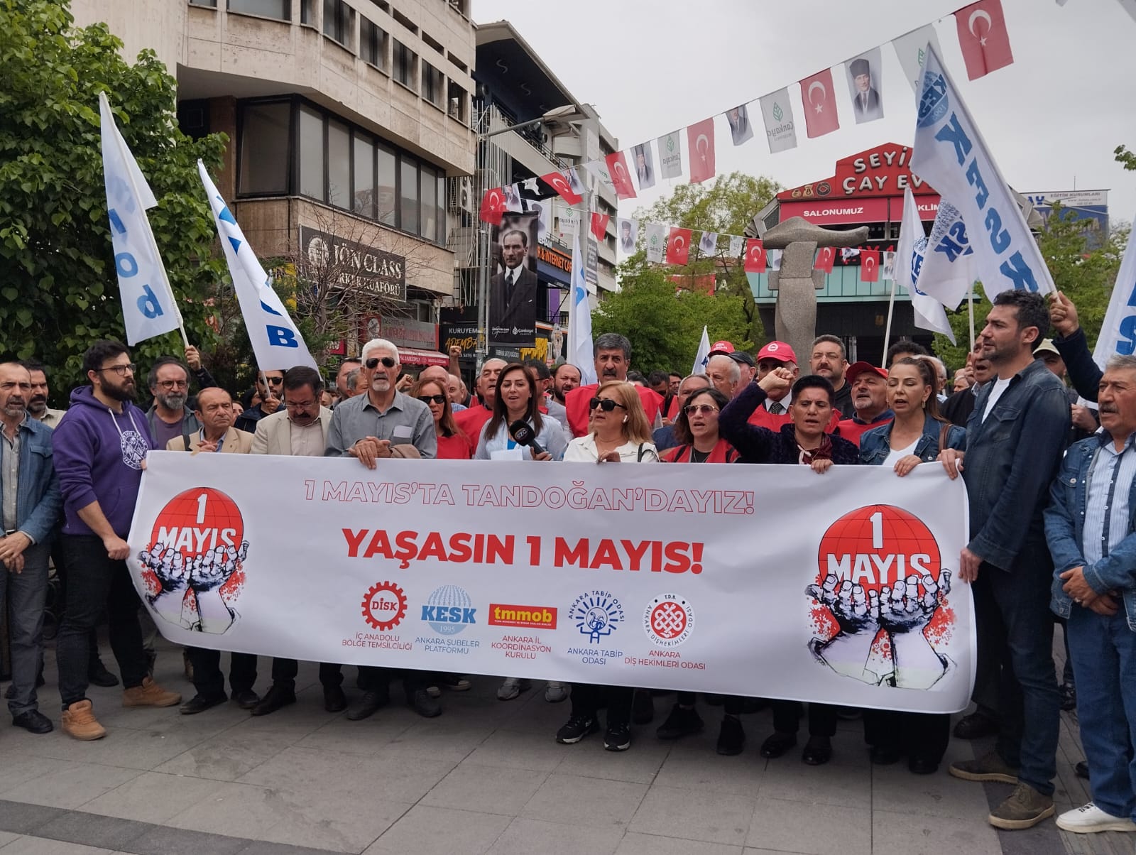 DİSK İç Anadolu Bölge Temsilciliği, KESK Ankara Şubeler Platformu, TMMOB Ankara İl Koordinasyon Kurulu, Ankara Tabip Odası (ATO) ve Ankara Diş Hekimleri Odası 1 Mayıs programını Sakarya Caddesi’nde yaptıkları basın açıklamasıyla açıkladı. Ankara 1 Mayıs’ının adresi Tandoğan Meydanı.