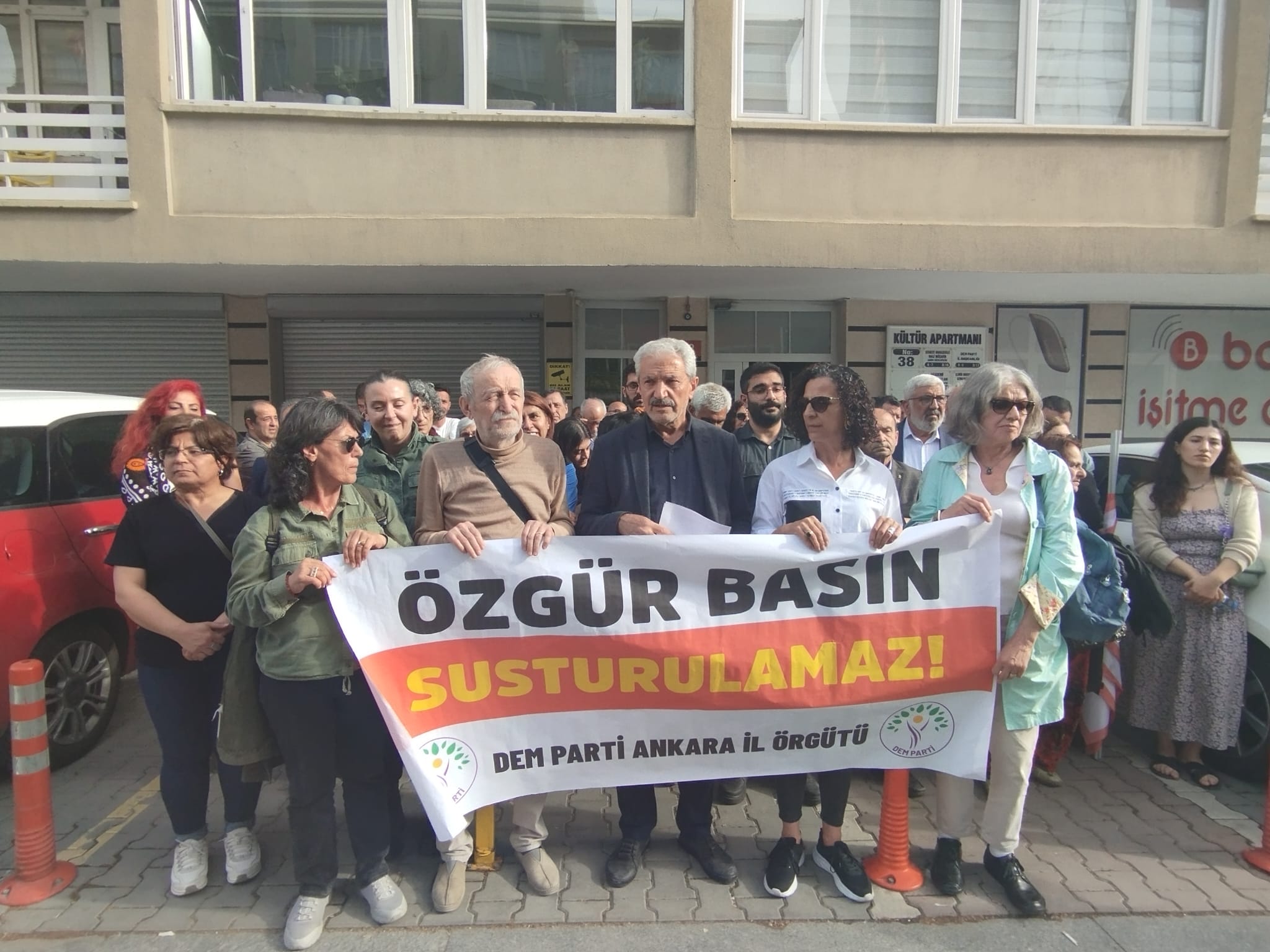 İstanbul, Ankara, Urfa ve Belçika’da gazetecilere yönelik operasyonlar Ankara’da protesto edildi. DEM Parti Ankara İl Örgütü’nün kendi binası önünde yaptığı açıklamaya emek ve demokrasi güçleri de destek verdi