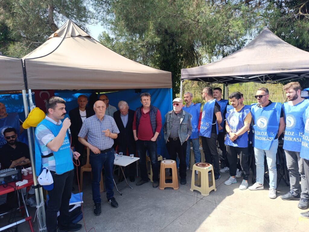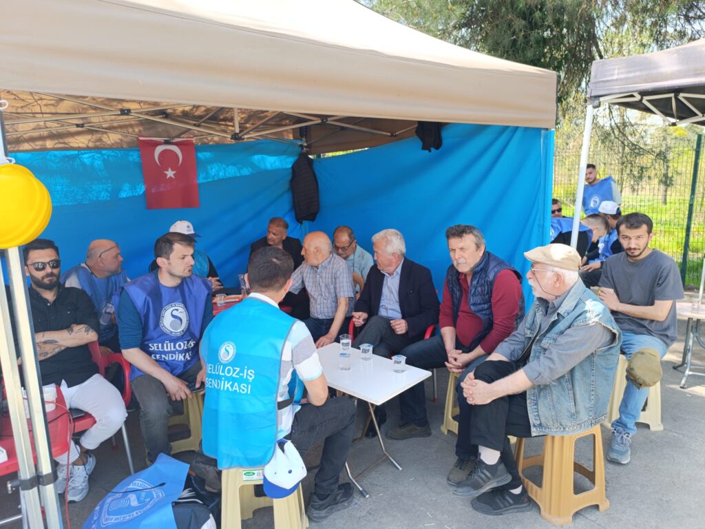 Zonguldak Çaycuma’da bulunan OYKA Kağıt işçilerinin grevi beşinci gününde. Seçim günü sadece seçtikleri nöbetçileri fabrika önünde bırakan işçiler sabahın erken saatlerinde işçiler grev alanında yerlerini aldı. Grevdeki işçileri SOL Parti Zonguldak İl Örgütü ziyaret etti.